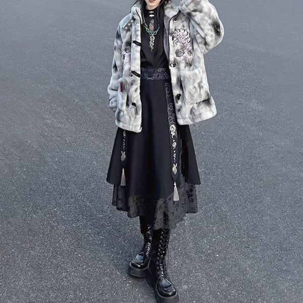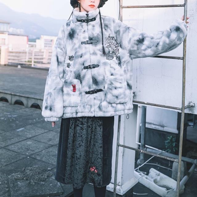 四連ストラップジップアップ白虎刺繍ボアジャケット(lli_6405)