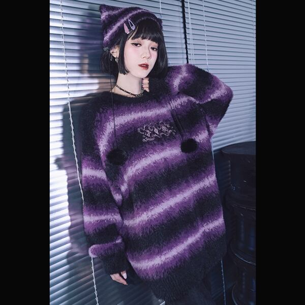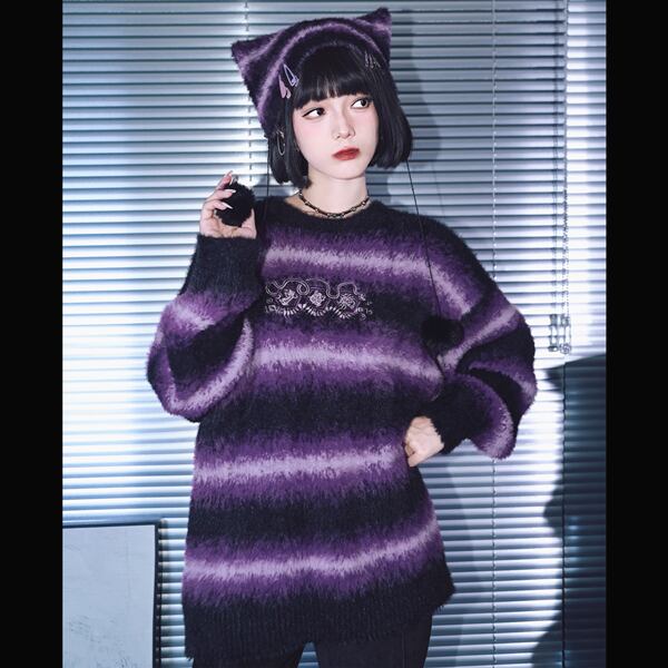 ▼ボーダーニット(五毒刺繍パープルブラックボーダープルオーバーニット(lli_6409))は以下からご覧ください▼