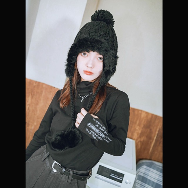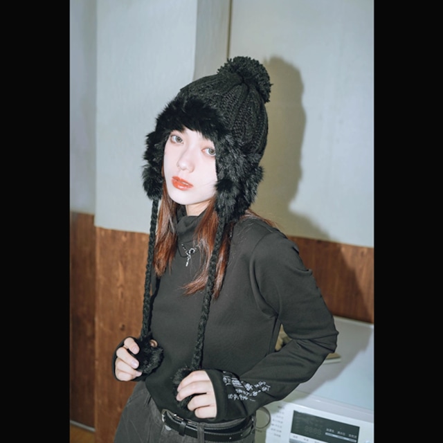 ポンポンフェイクファーキャップ(lli_6416)