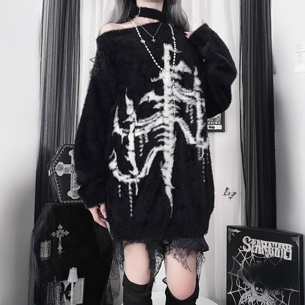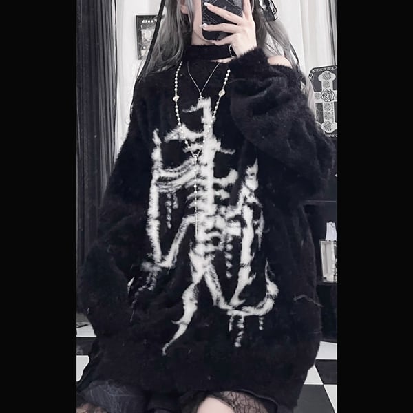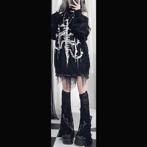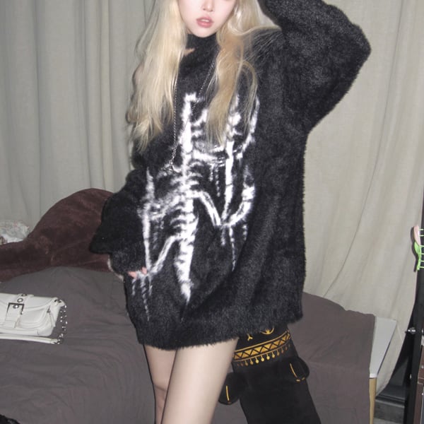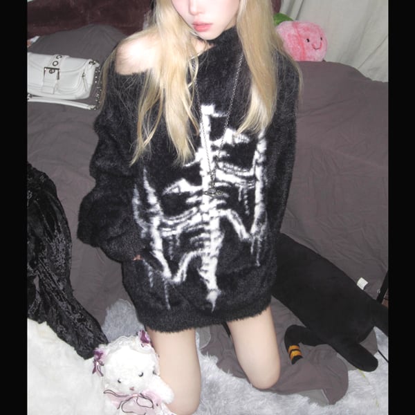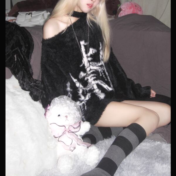 ボーンキャンドルもこもこブラックニット(lli_6431)