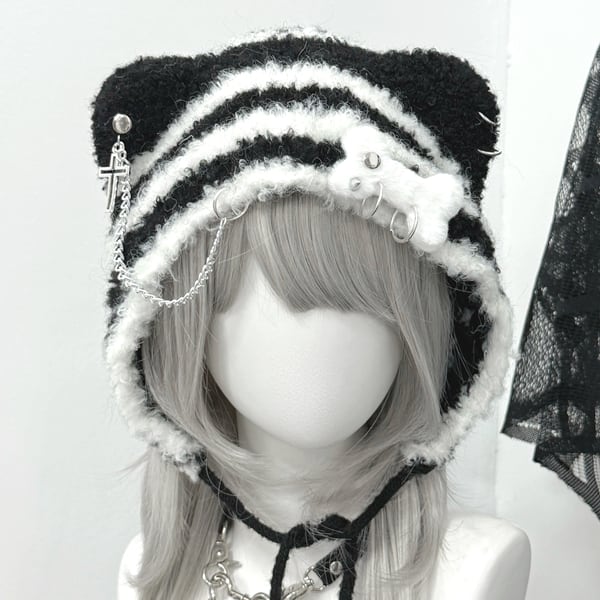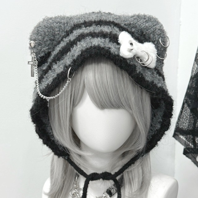 クマ耳ドッグボーンチェーンアクセ赤ずきんフードキャップ(3パターンあり)(lli_6432)