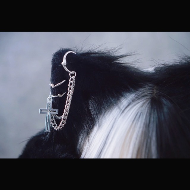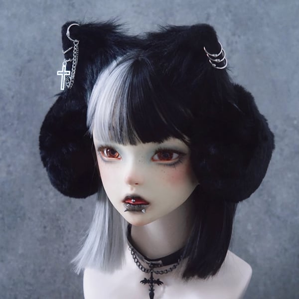 ブラックキャットクロスチェーンモフモフパンクイヤーマフ(lli_6435)