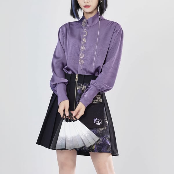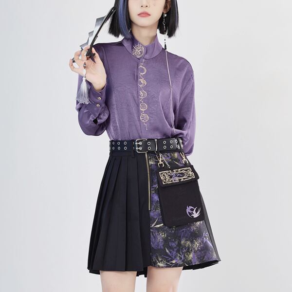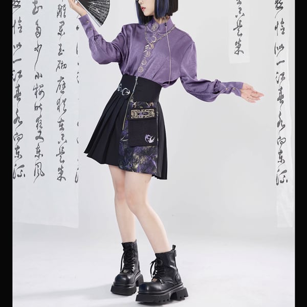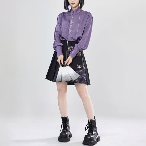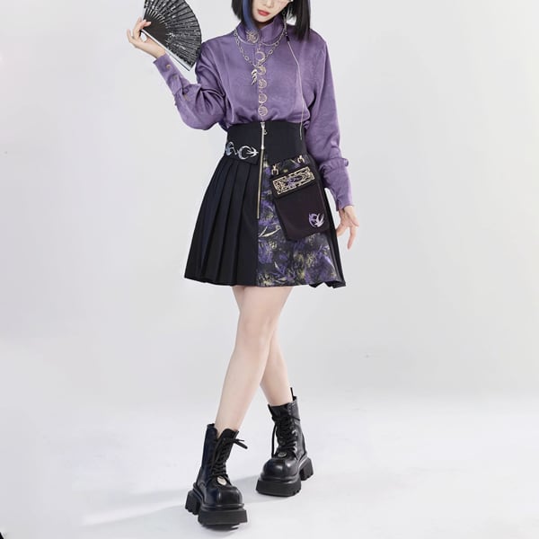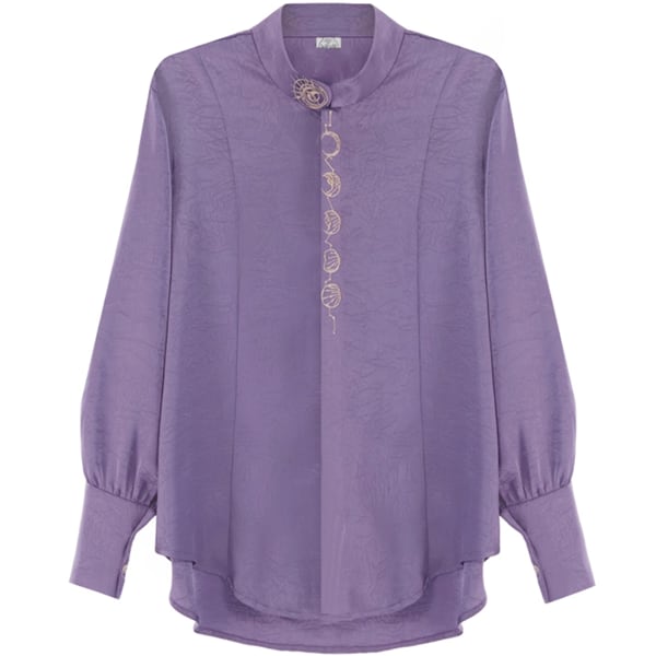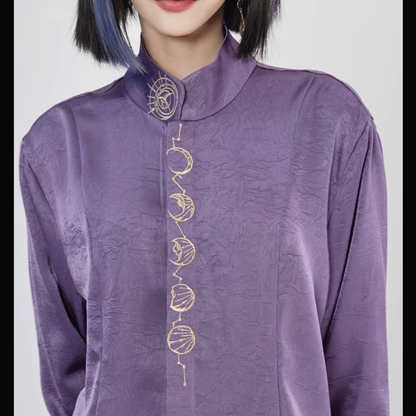 スタンドカラークレセントムーン刺繍パープルシャツ(lli_6440)