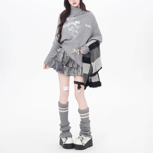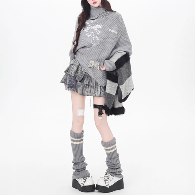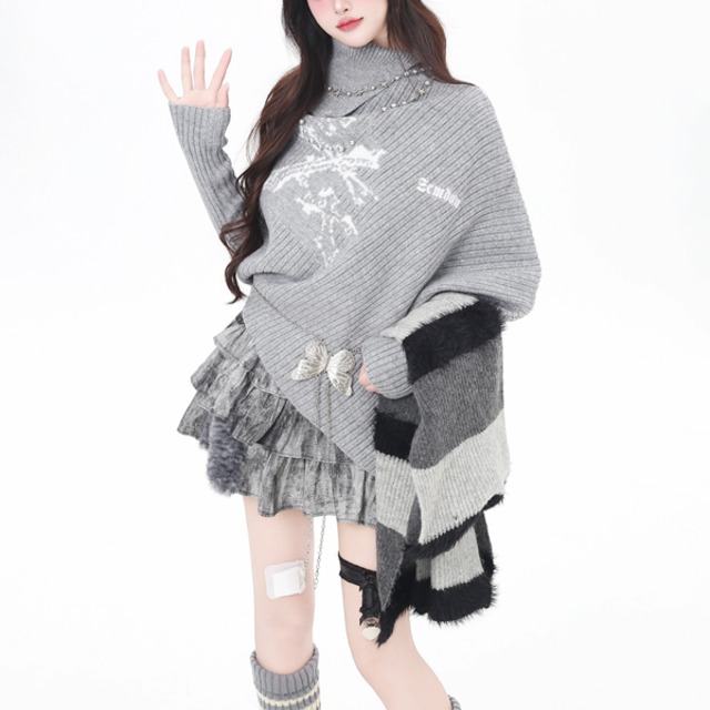 コウモリスリーブアシメハイネックニット(2カラーあり)(lli_6450)