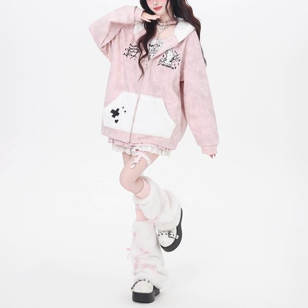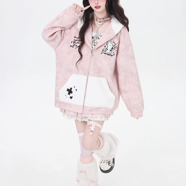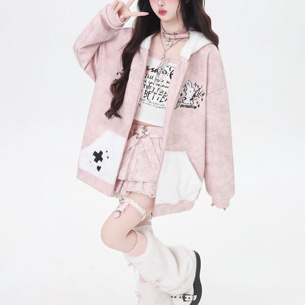ウサギフーディジップアップキラーラビットジャケット(lli_6452)