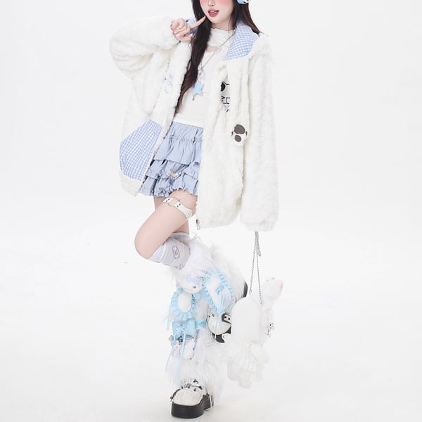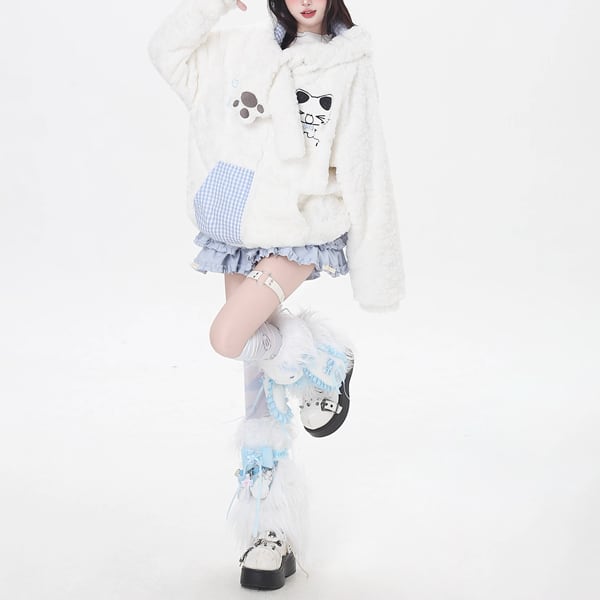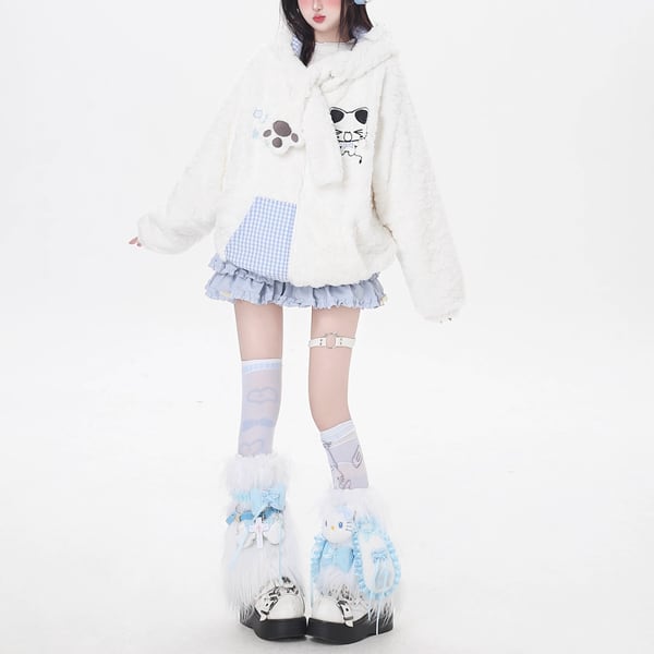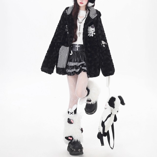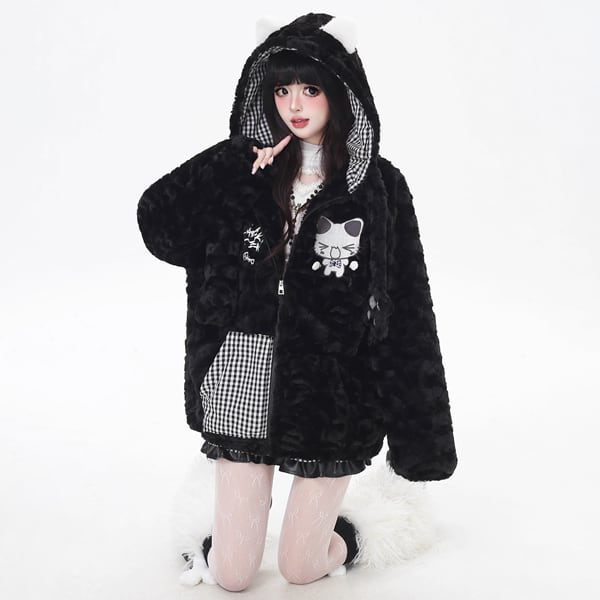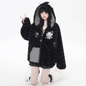 キャットフーディマフラーアームデザインジップアップボアジャケット(2カラーあり)(lli_6458)