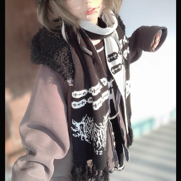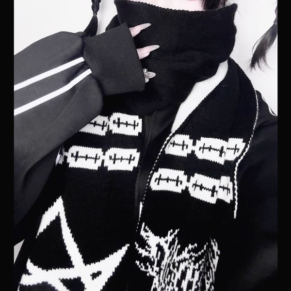 レイザーペンタグラムアイコンリバーシブルマフラー(lli_6470)