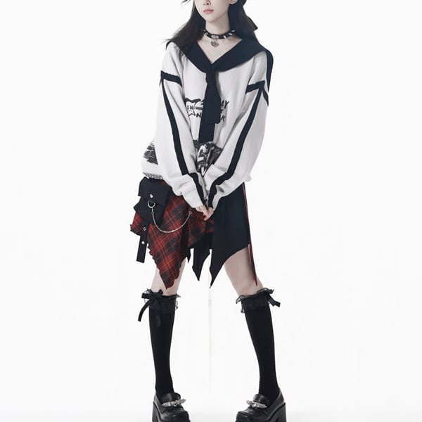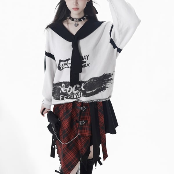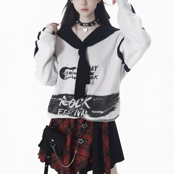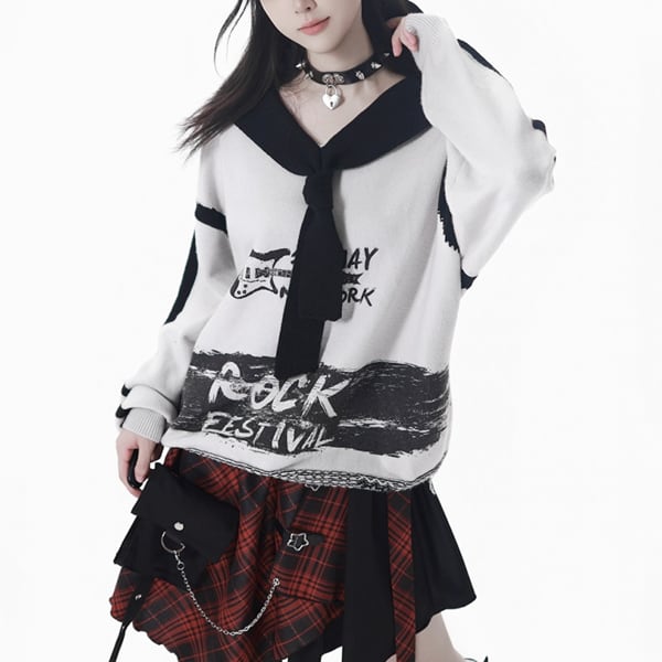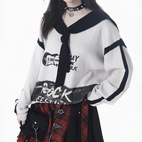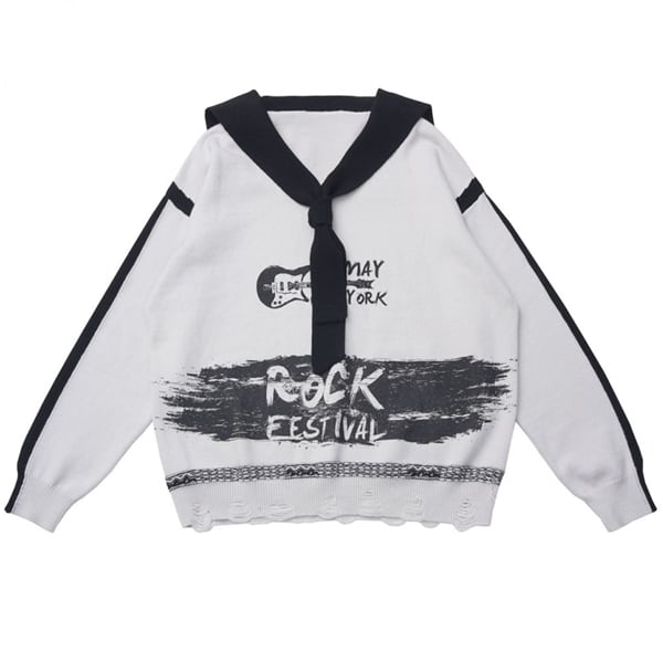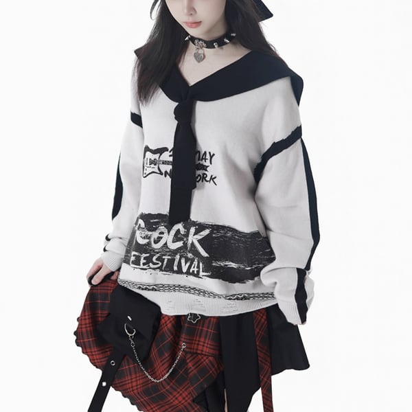 ブラックセーラーカラーダメージパンクニット(lli_6473)