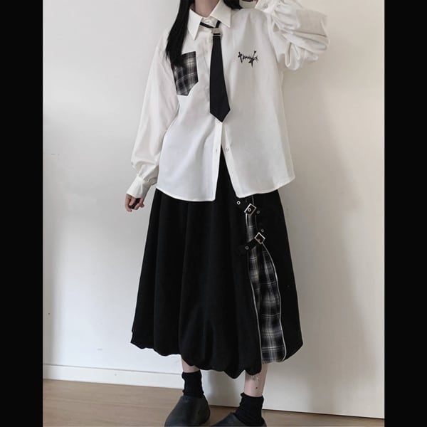 ▼シャツ(チェック切り替えポケットロングスリーブホワイトパンクシャツ(lli_6476))は以下からご覧ください▼