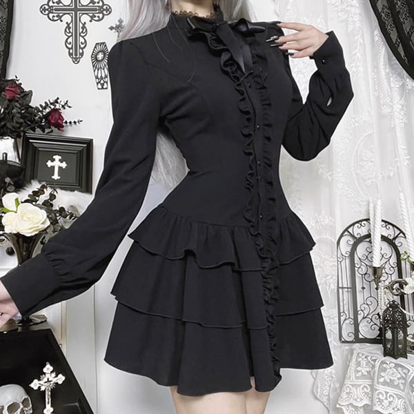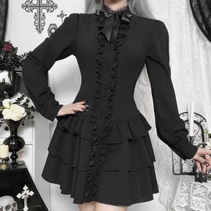 フロンフリルレイヤードスカートゴシックシャツワンピース(lli_6490)
