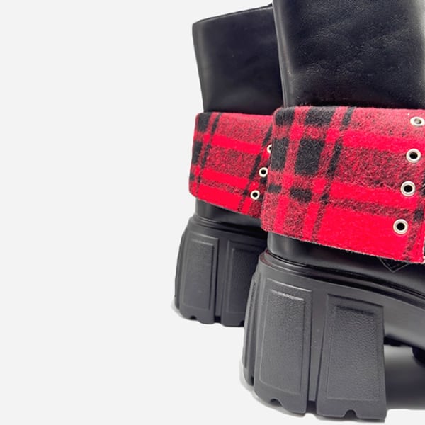 ◼️サイズ ・35(22.5cm) ・36(23cm) ・37(23.5cm) ・38(24cm) ・39(24.5cm) ・各部 筒周り:約22cm 高さ:約15.5cm(ソールは含まず)ソール:約9cm ◼️カラー ・ブラック ・ブラック×レッドチェック ◼️材質 PU ◼️お届けについて こちらの商品は海外店舗より直接発送となる為、 ご入金から1週間~3週間前後で発送及び到着予定となります※ ※予約商品については発送予定日から上記日数で順次発送となります。状況によっては予定発送日より早く発送となる場合もございますので予めご承知おき下さいませ。 その他遅れる場合もございますので予めご承知おき頂けますようお願い致します。 ■お支払方法(以下よりお選び頂けます) ・クレジットカード決済(VISA、Mastercard、JCB、AMERICAN EXPRESS) ・携帯キャリア決済(NTTdocomo、auかんたん決済/au WALLET、SoftBank、Y!mobile) ・あと払い(Pay ID)(商品到着後、コンビニ等でお支払い頂けます)※ ※お支払いは「Pay ID」アプリを使用してお支払い、又は請求確定後に届く請求メールよりお支払い頂くことができます。 ▼あと払い(Pay ID)のお支払いの詳細につきましては、以下のリンク先のご説明を必ずご確認下さい▼ 「★あと払い(Pay ID)、コンビニ決済、銀行振込決済、後払い決済のご説明」 https://www.lunaly.jp/items/35753560 ★インスタのショップURLリンクからブラウザを開いての購入時、又はSafariを使用してPAY IDにログインした際、「ショッピングカートに商品は入っていません」と表示される場合がございます。 その際は以下のURL先にて対処方法が記載されておりますので、大変お手数ですがリンク先の対処方方法をお試し頂けますようお願い致します。 ▼【「ショッピングカートに商品は入っていません。」と表示される場合の対処方法について】 https://help.thebase.in/hc/ja/articles/900005699246 ◼️注意事項 ・商品在庫切れにより注文キャンセルとさせていただく恐れもございますので、予めご了承くださいませ。 ・仕入れ工場を変えることがあるため、記載サイズと若干異なる場合がございます。 ・商品の色味は、お手持ちのスマートフォンの画面によって実物と若干異なる場合がございます。 ・イメージ違いやサイズ交換等、お客さまご都合による交換、返品は対応出来かねます。 ・【shop about】、【INFOMATION】は必ず目を通して頂けますようお願い致します。 ・ご購入前に以下のメールアドレスからのメールを必ず受信できるように設定をしてからご購入をお願い致します。 キャリアメールをご利用のお客様は初期状態ではPCからのメールは受信されない設定になっているケースが多く、以下のメールが受信できないことが大変多くなっております。 ▼以下のメールアドレスからのメールを受信できるよう購入前に必ず設定をお願いします。 [email protected] [email protected] 【shop about】 https://www.lunaly.jp/about 【INFOMATION】 https://www.lunaly.jp/categories/2834049 【lunaly ショップTOP】 https://www.lunaly.jp/ 【lunaly INSTAGRAM】 https://www.instagram.com/lunaly_official/ ※よろしければインスタのいいね、フォローをお願い致します!