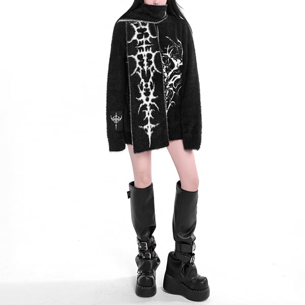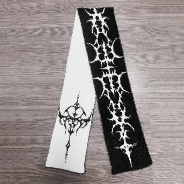 ホワイトブラックリバーシブルサブカルロゴマフラー(lli_6541)