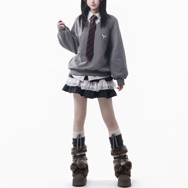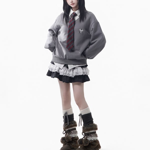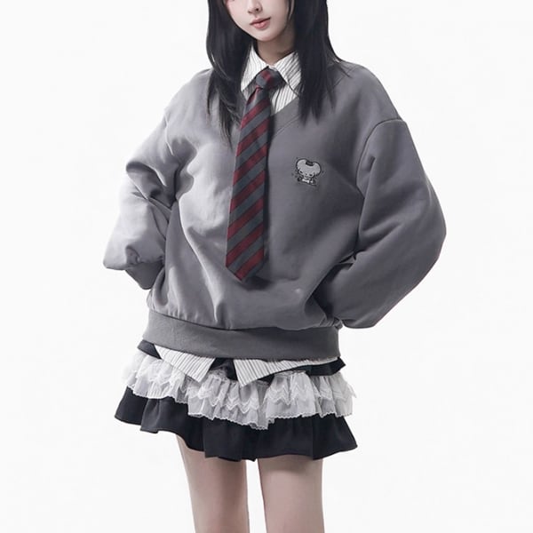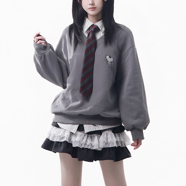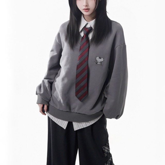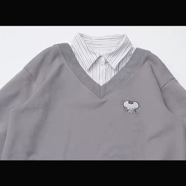 マウス刺繍フェイクレイヤードスウェットトップス(lli_6544)