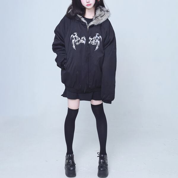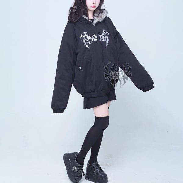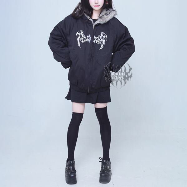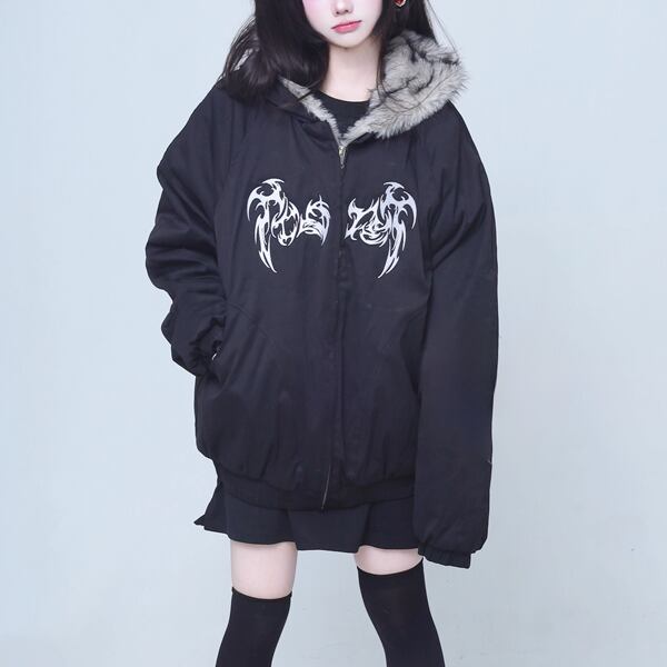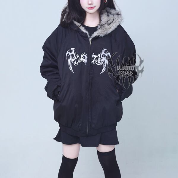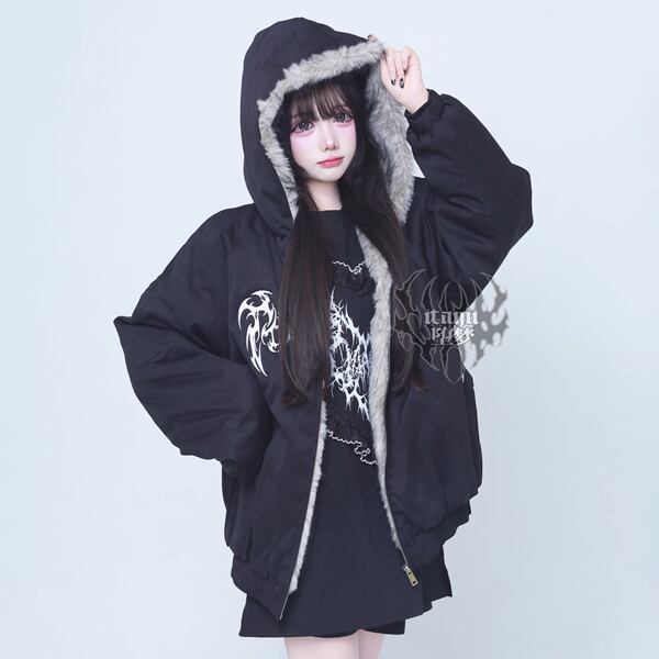 ゴシック刺繍ファーフード中綿ブルゾン(lli_6561)