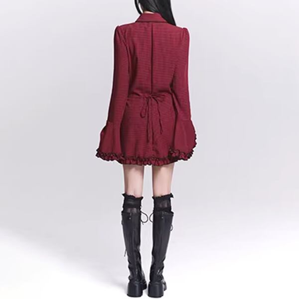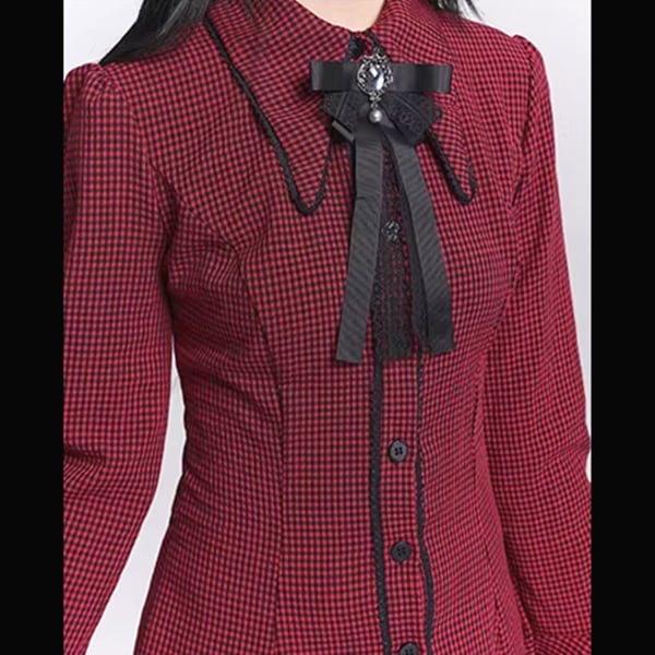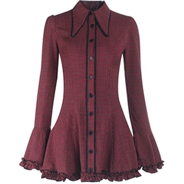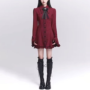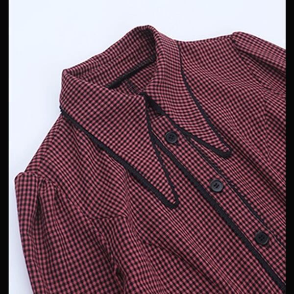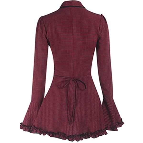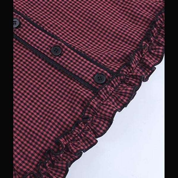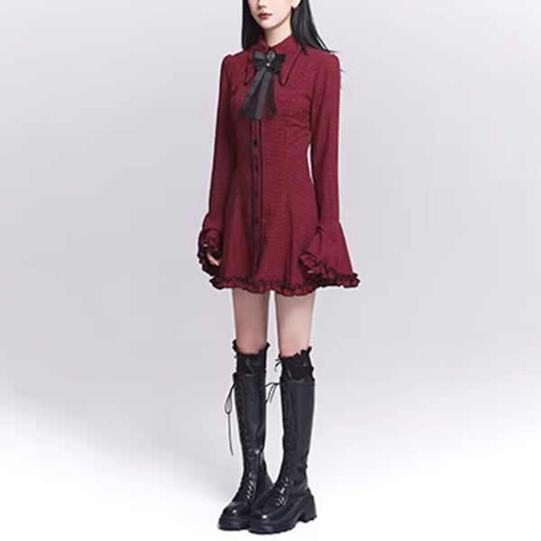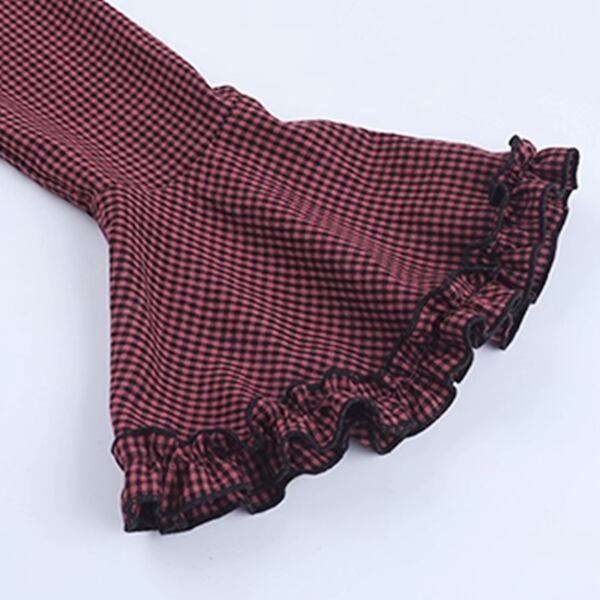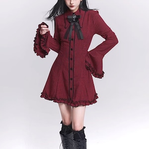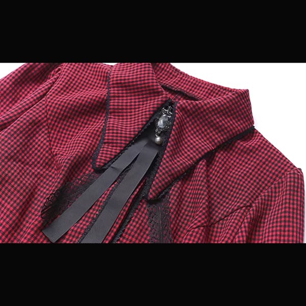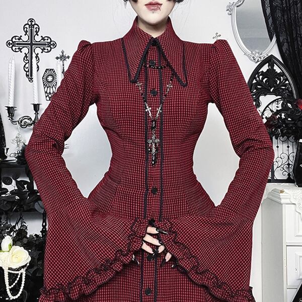 ダークゴシックチェックフレアスリーブワンピース(lli_6567)