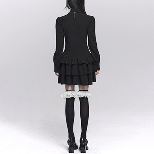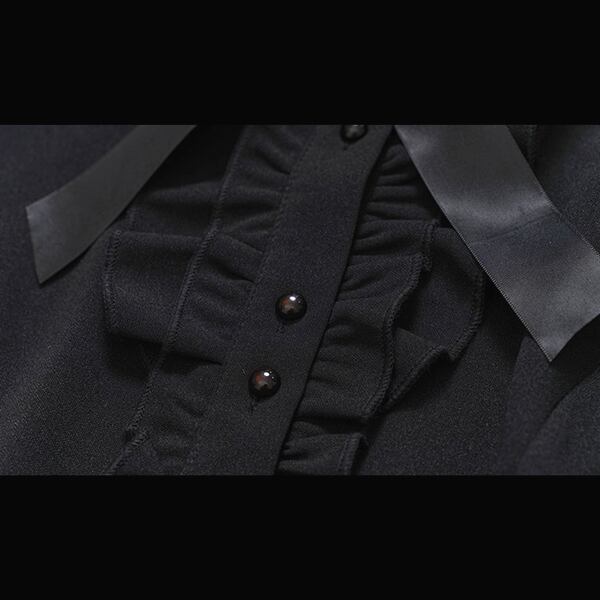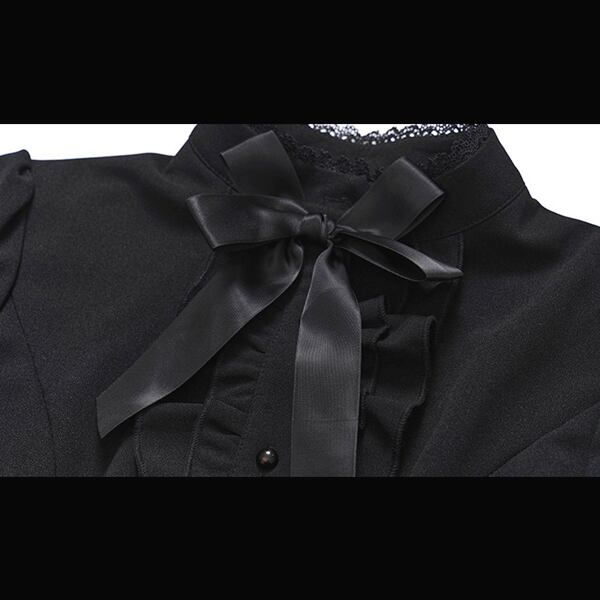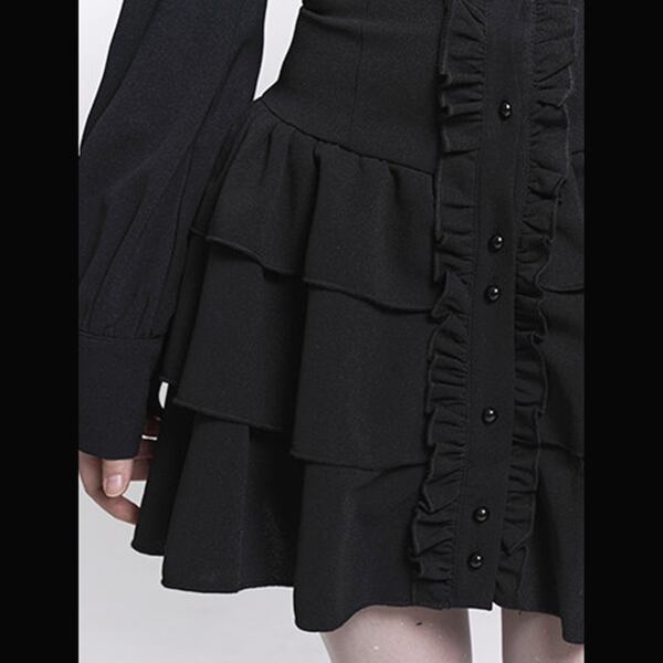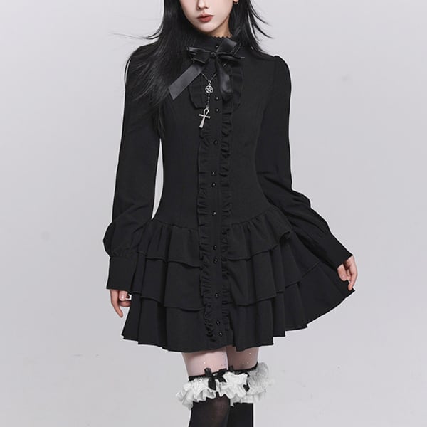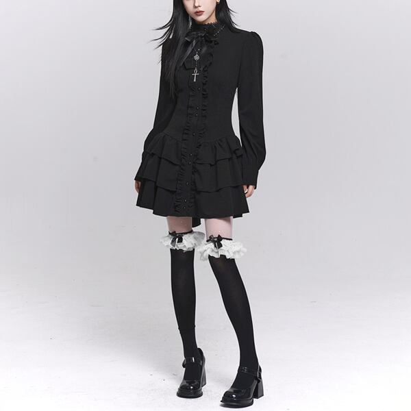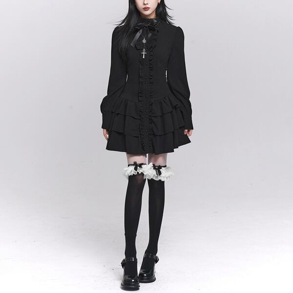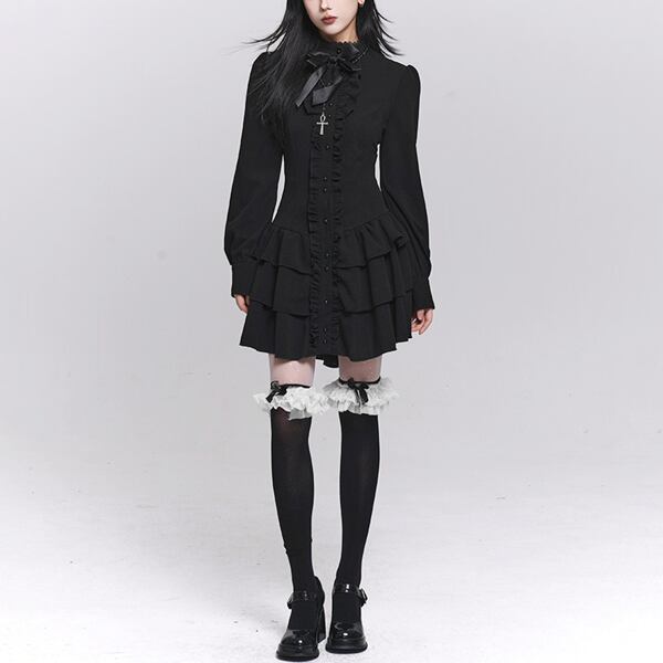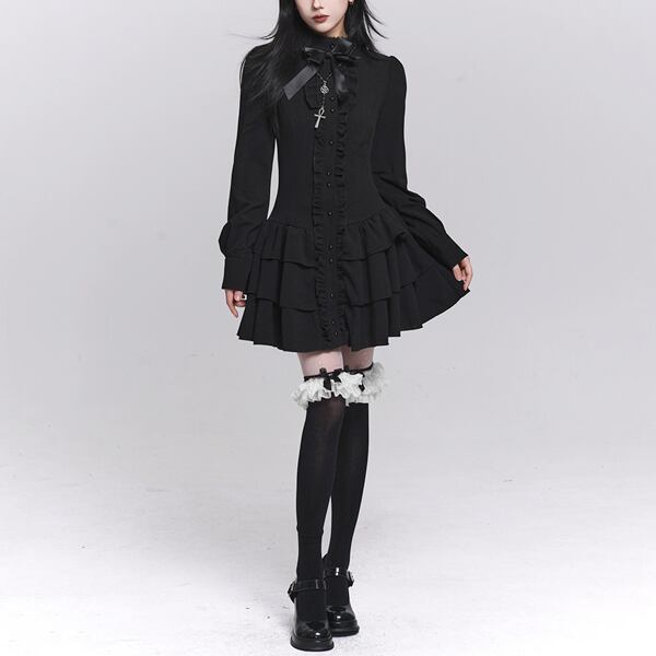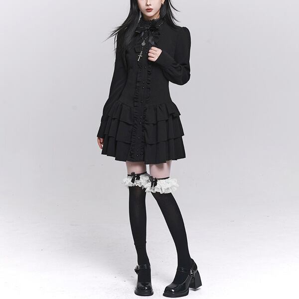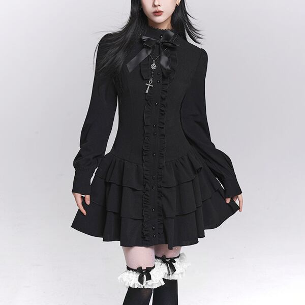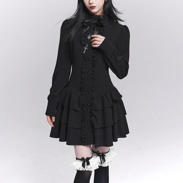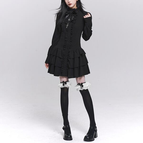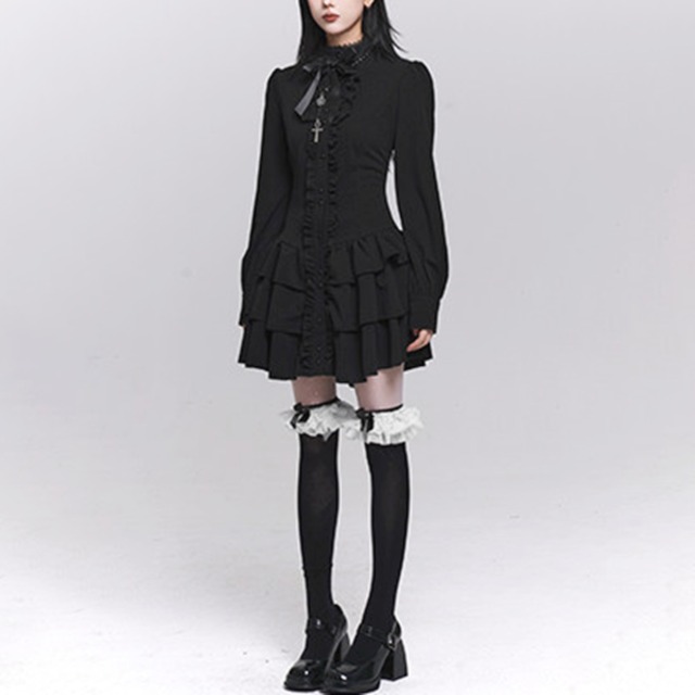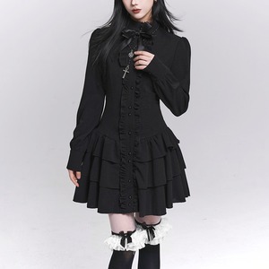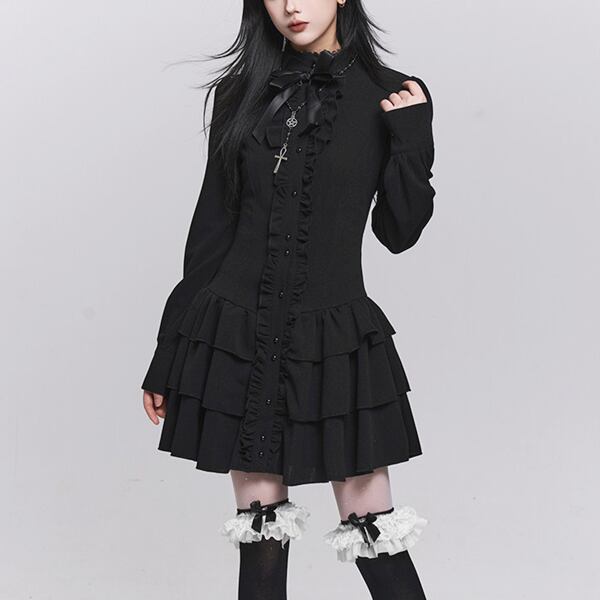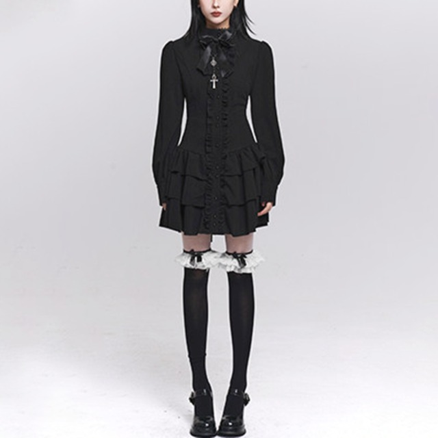 ゴシックフリルリボンネックフレアワンピース(lli_6593)