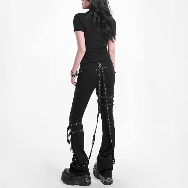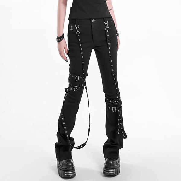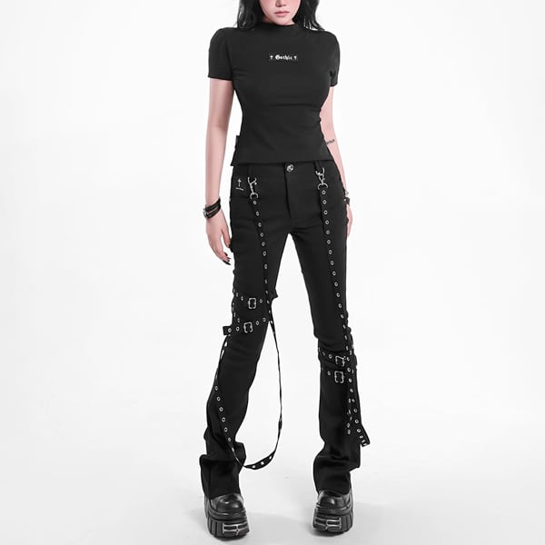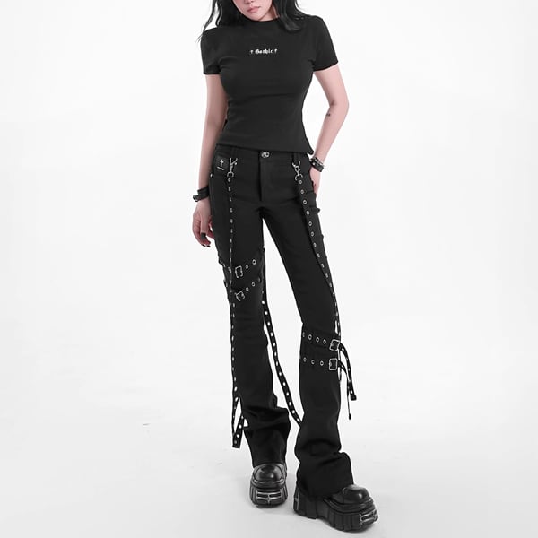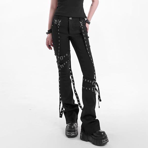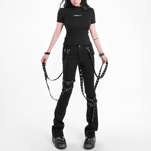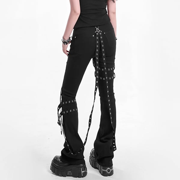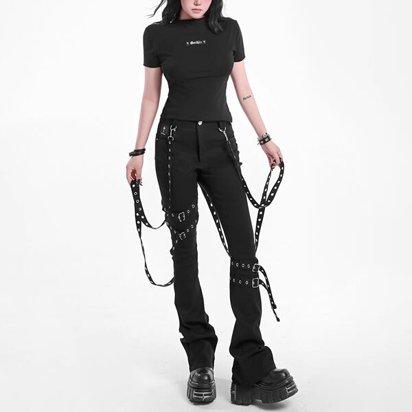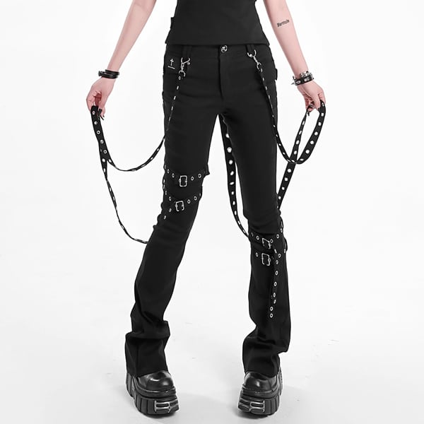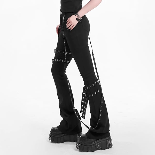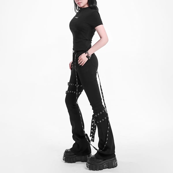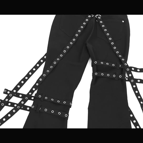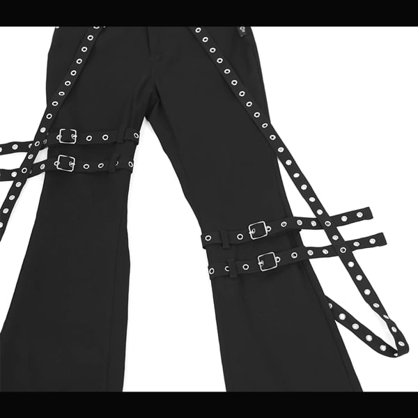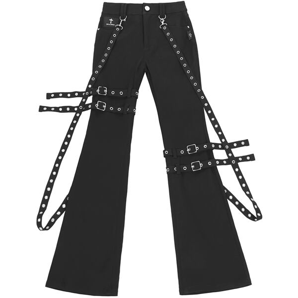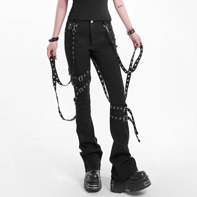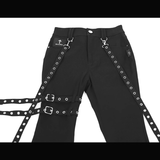 ストラップベルトボンテージパンクストレッチセミフレアパンツ(lli_6603)