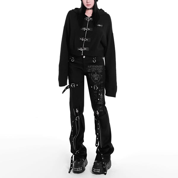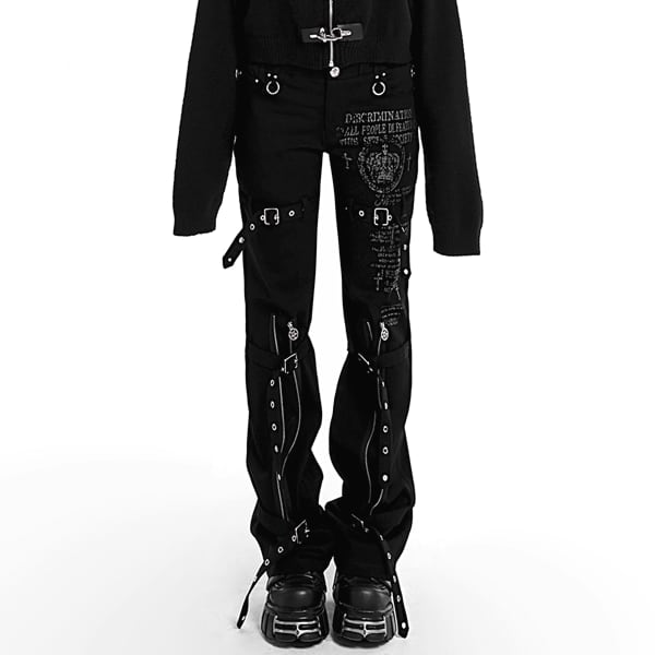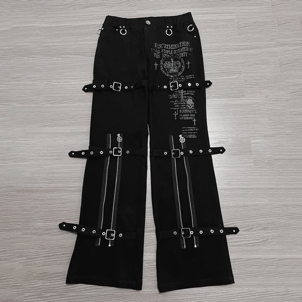 ダークパンクストレッチマルチストラップジップパンツ(lli_6602)
