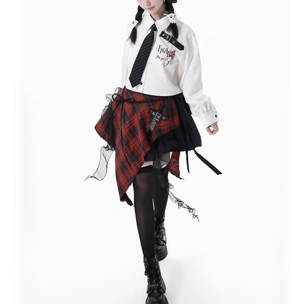 ▼アシメチェックスカート(ブラックレースレッドチェックアシメデザインスカート(lli_6075))は以下からご覧ください▼