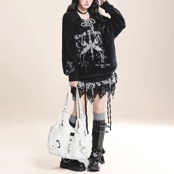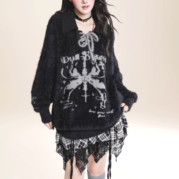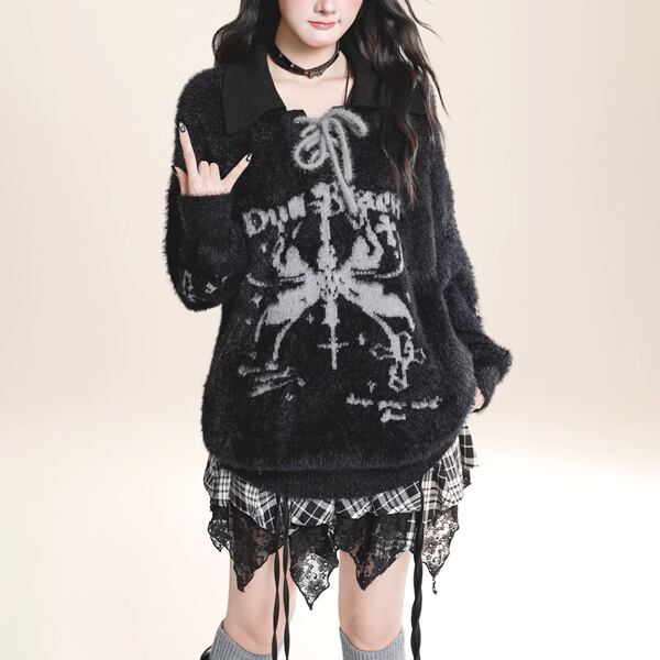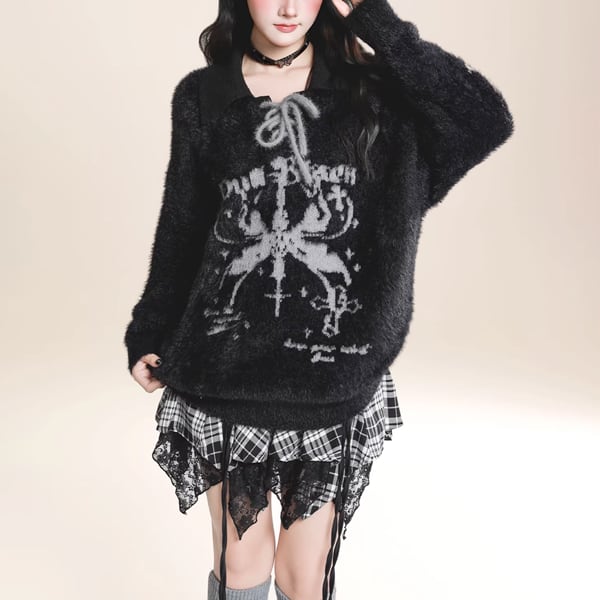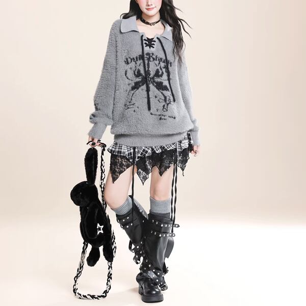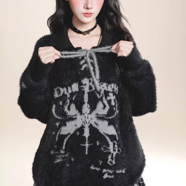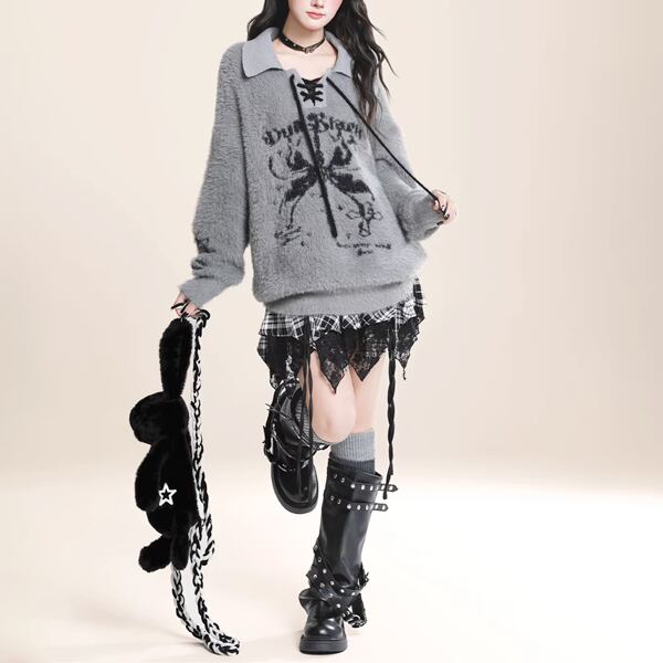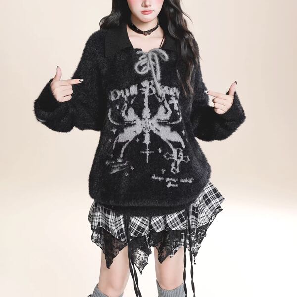ダークバタフライ レースアップファーニット(2カラーあり)(lli_6632)