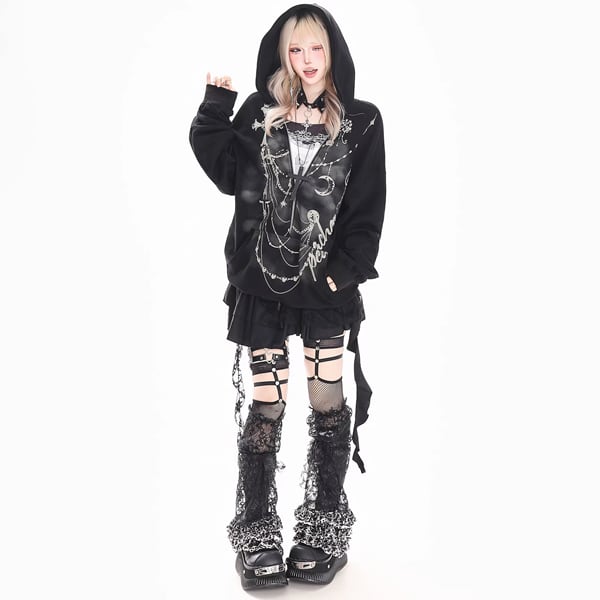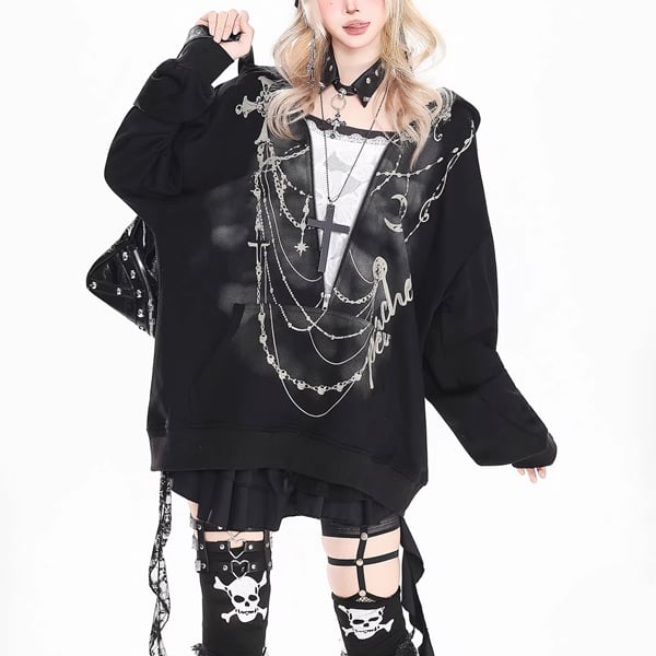 チェーンクロスプリントハーフジップフーディー(2カラーあり)(lli_6638)