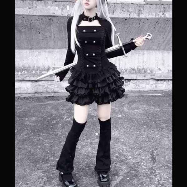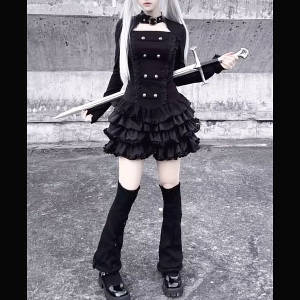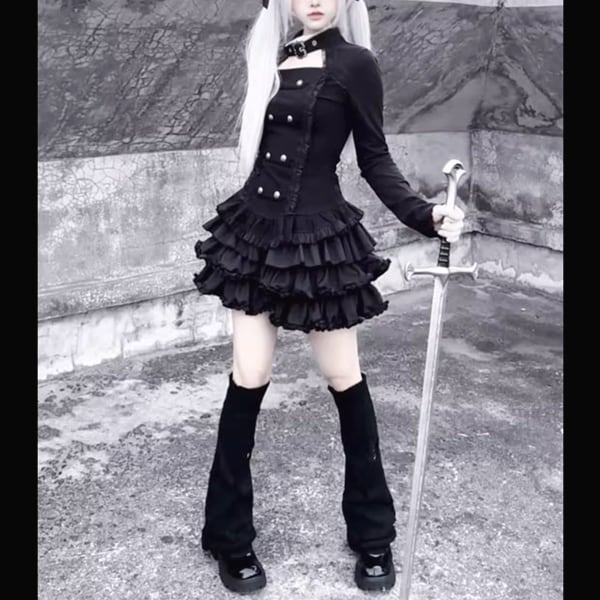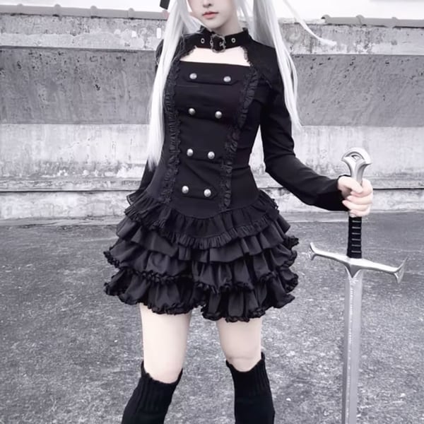 ダブルボタンゴシックスクエアネックトップス(lli_6649)