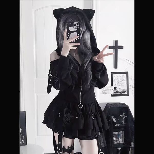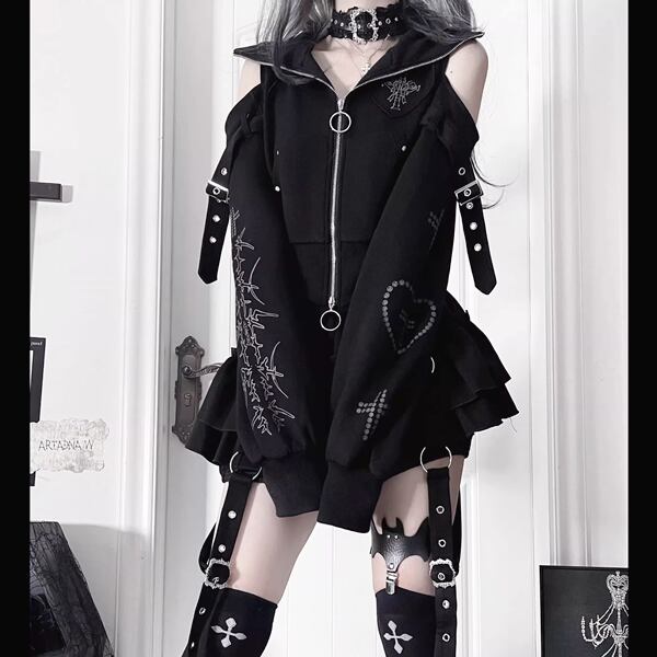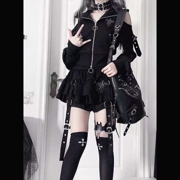 ストラップベルトティアードゴシックスカート(lli_6659)