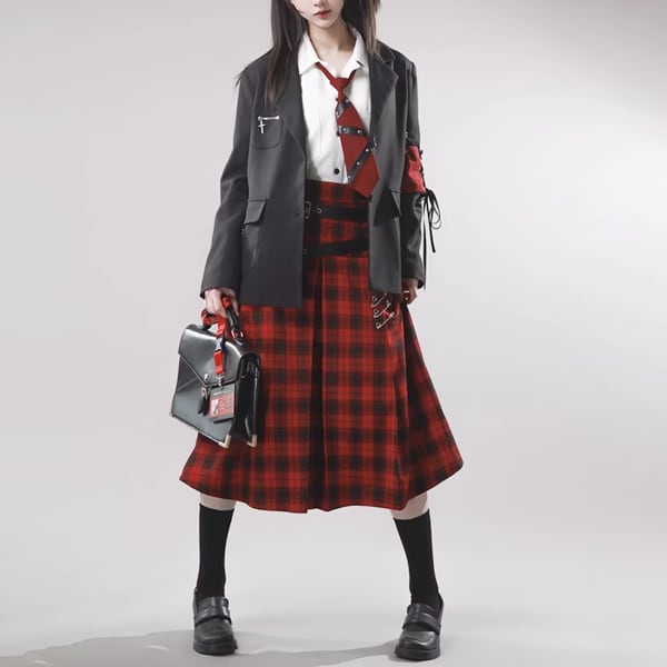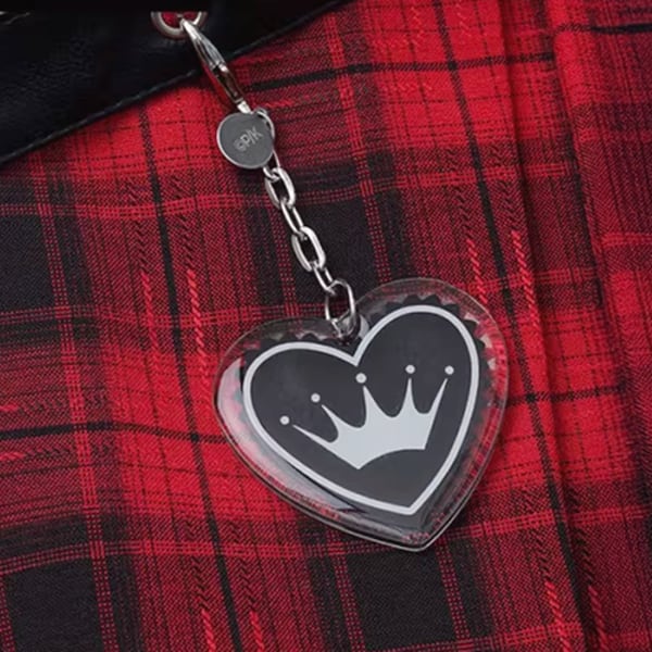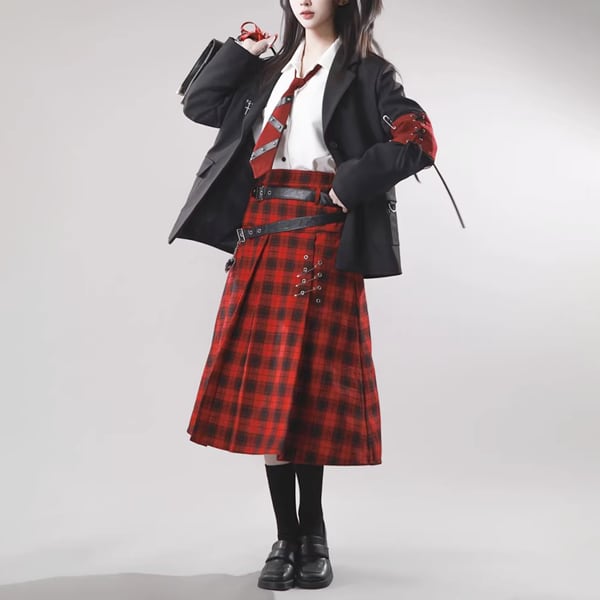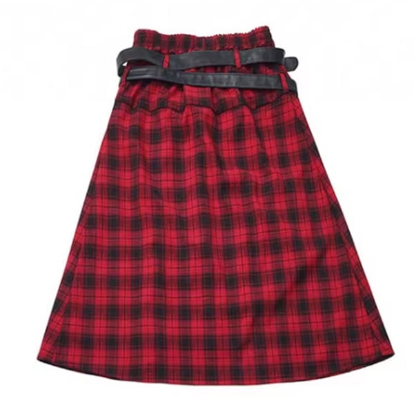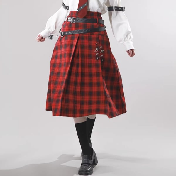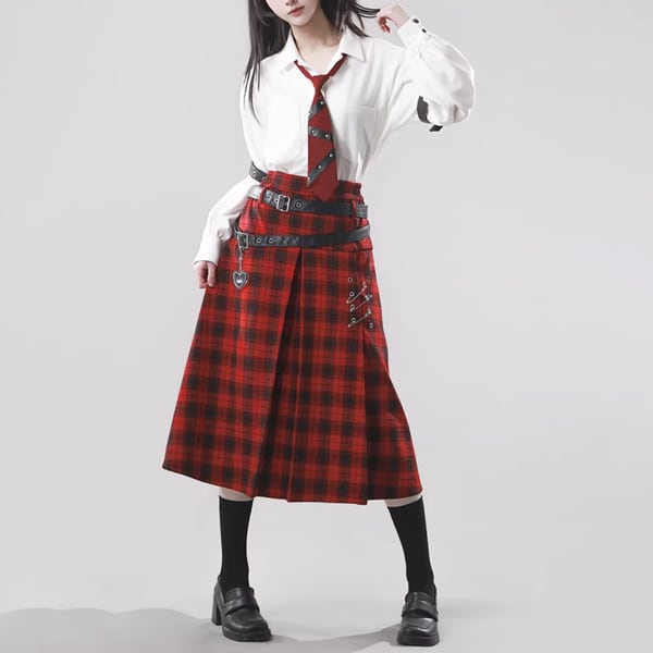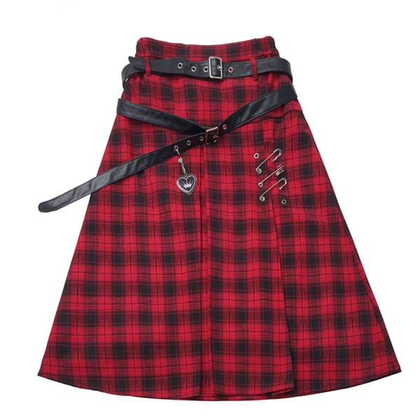 クラウンハートチャームピンベルトレッドチェックスカート(lli_6675)