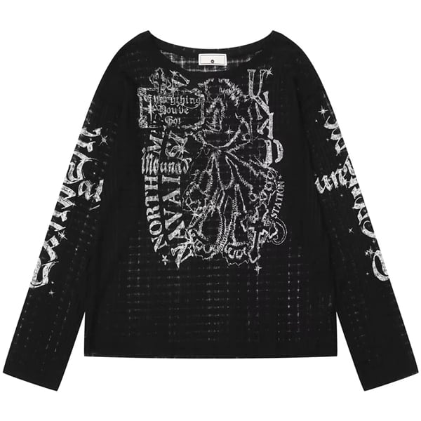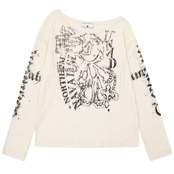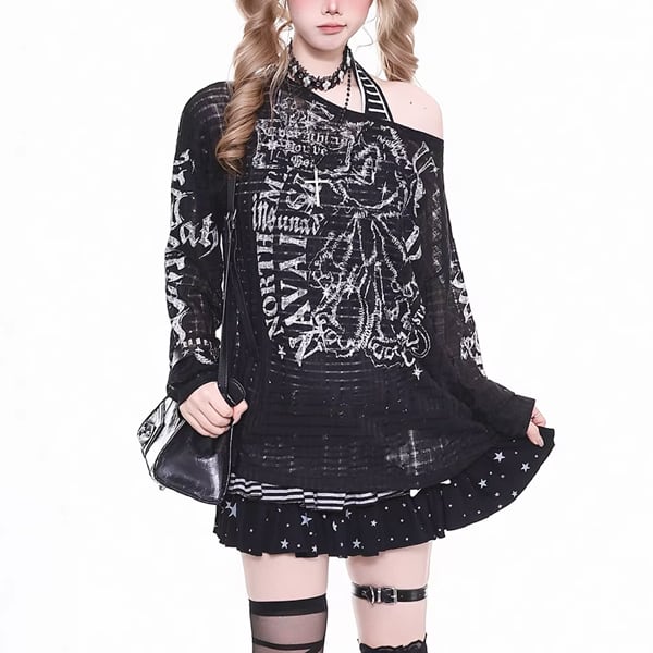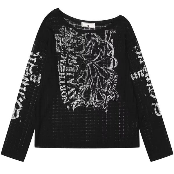 ゴシックレターシアーオフショルカットソー(2カラーあり)(lli_6679)
