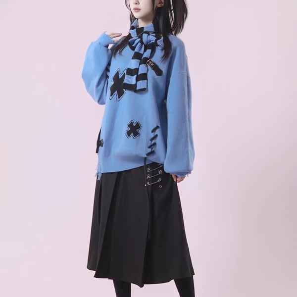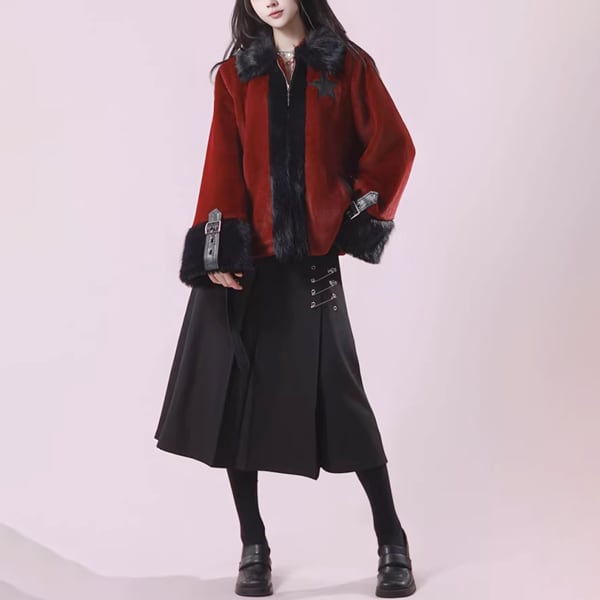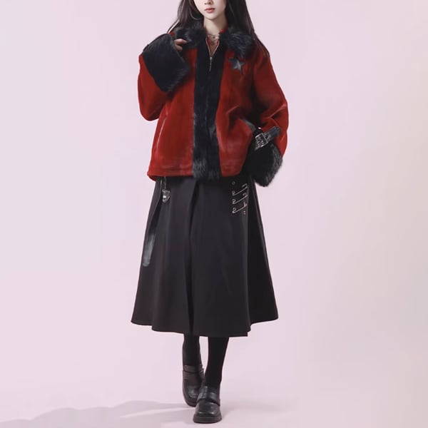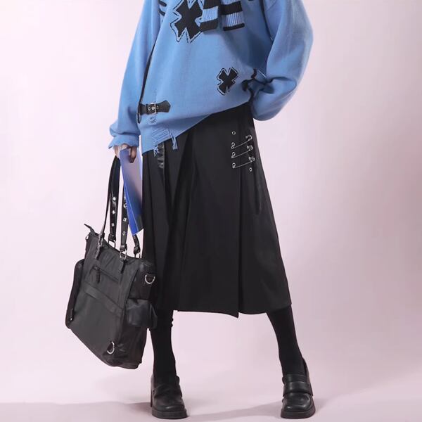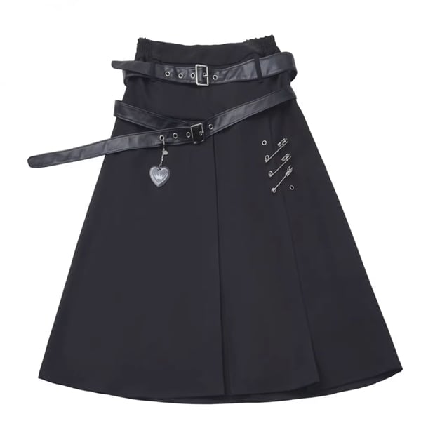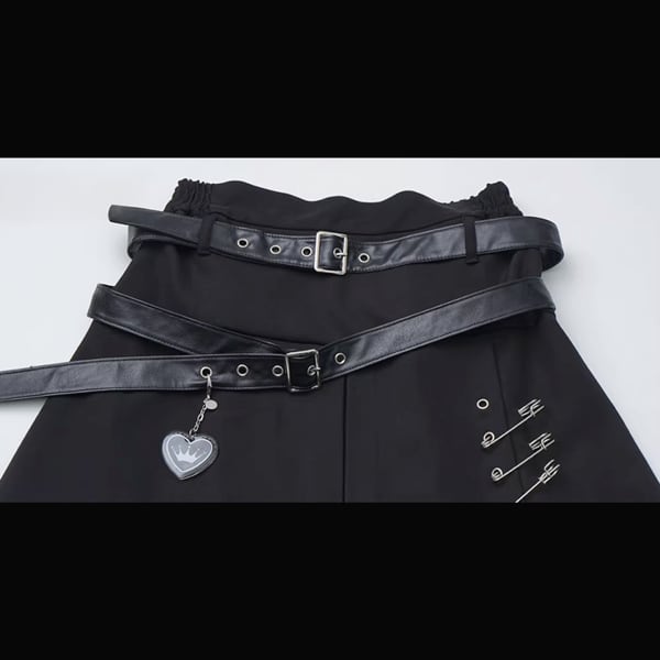 クラウンハートチャームピンベルトブラックスカート(lli_6694)