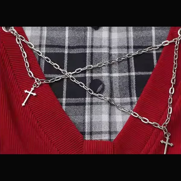 ▼グレー(チェーンアクセフェイクレイヤードチェックカーディガンシャツ(lli_6245))は以下からご覧ください▼