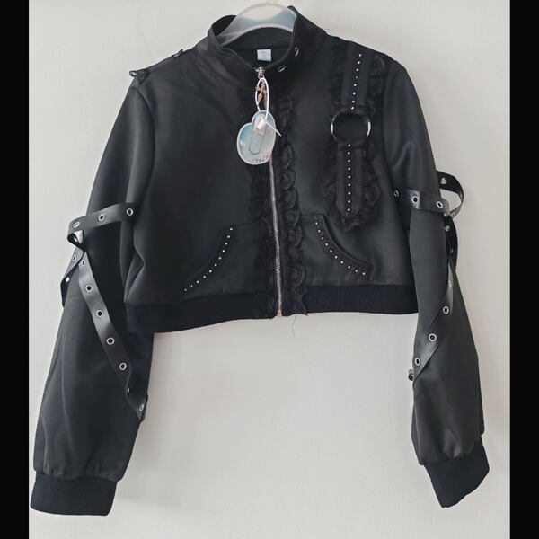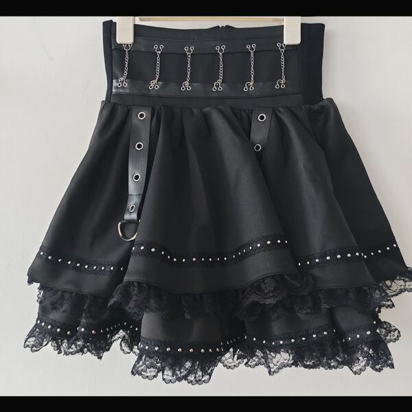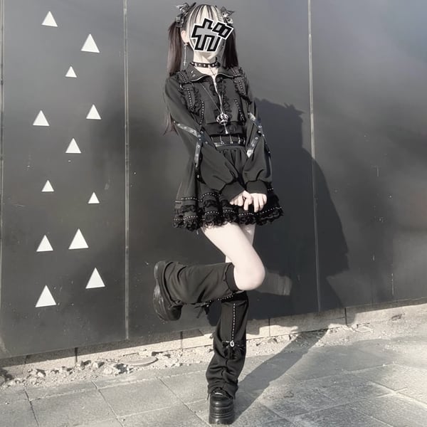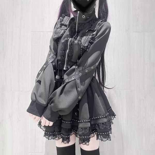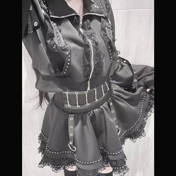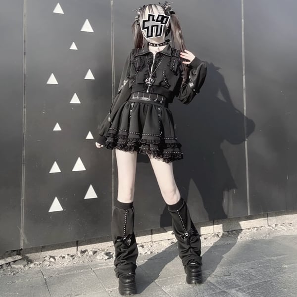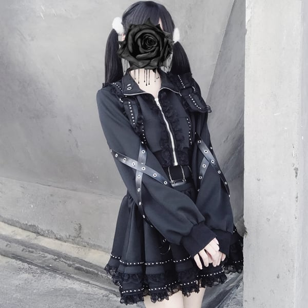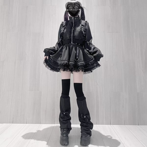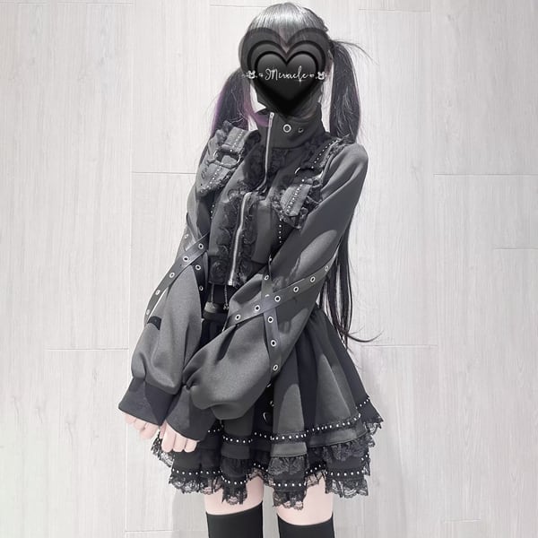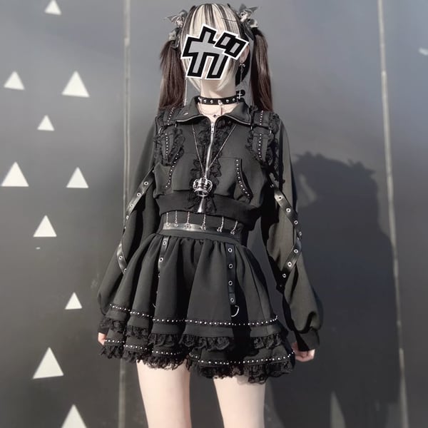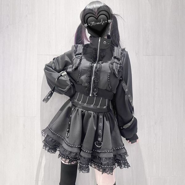 ブラックフリルストラップゴシックセットアップ(3点セット)(lli_6703)