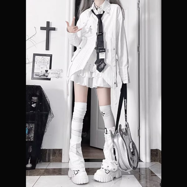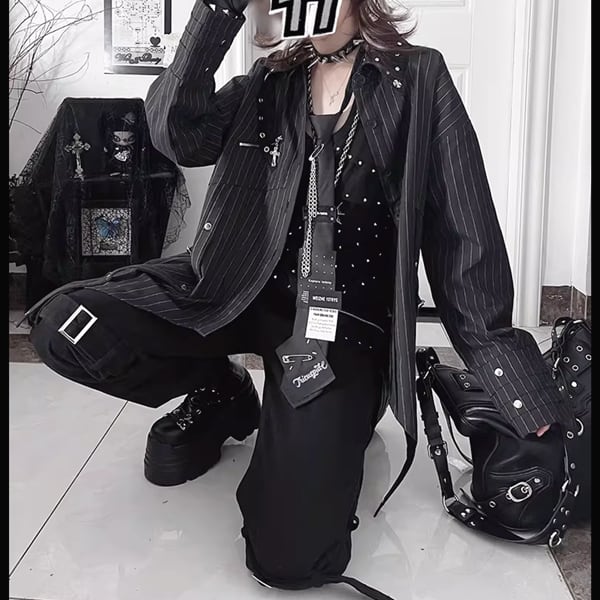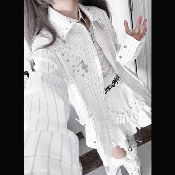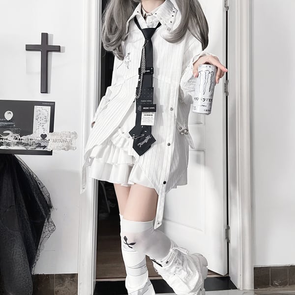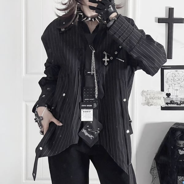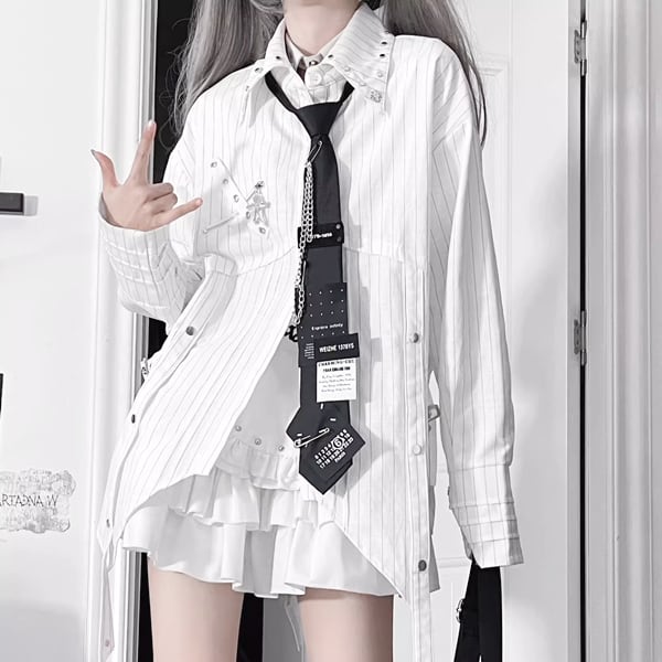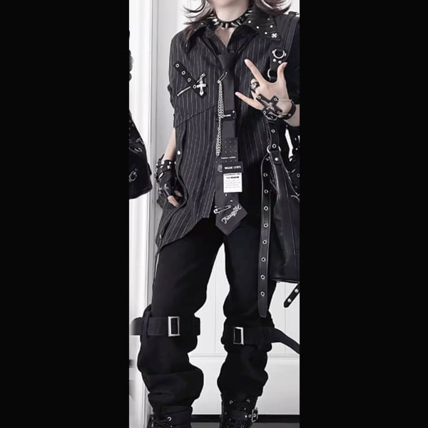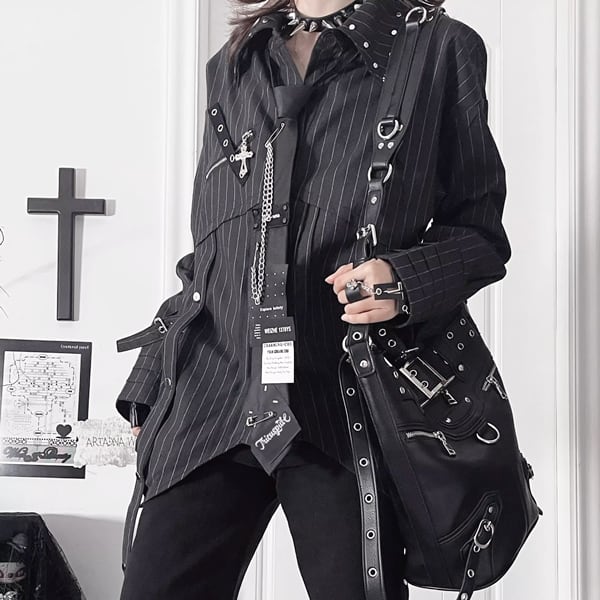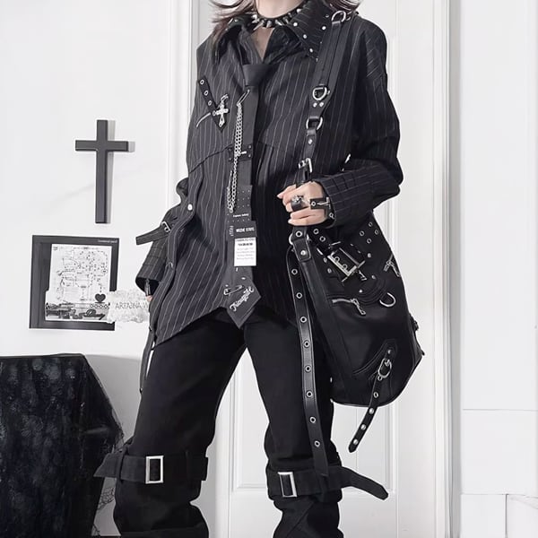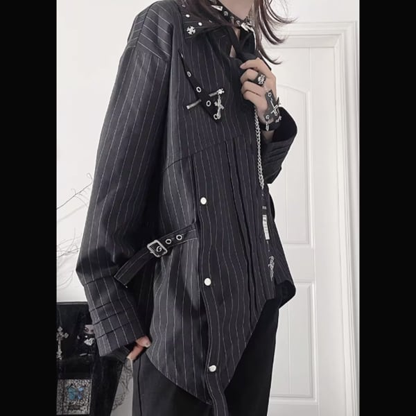 クロスハーネス・ストライプゴシックシャツ(2カラーあり)(lli_6704)