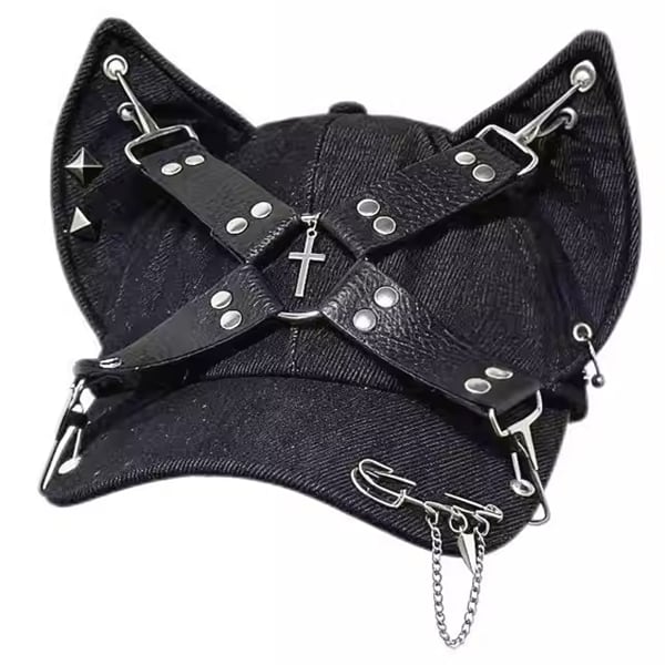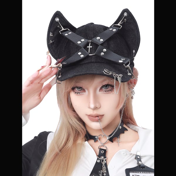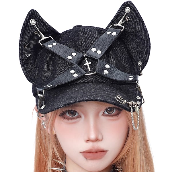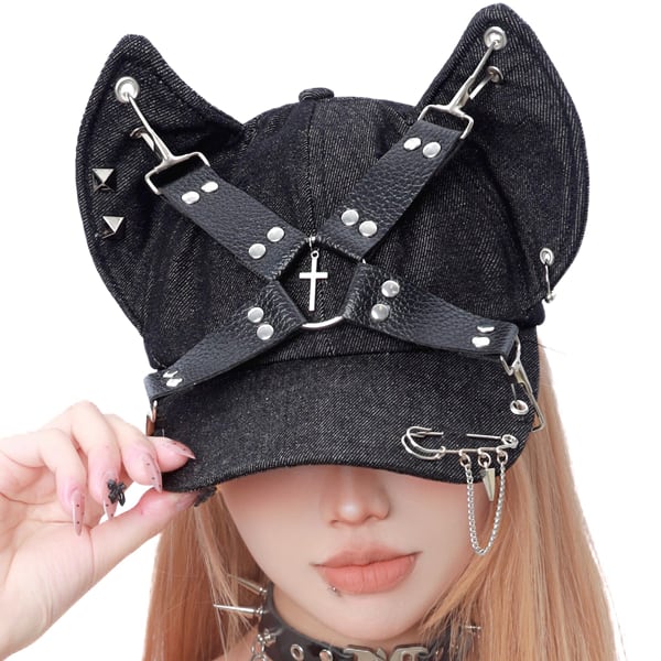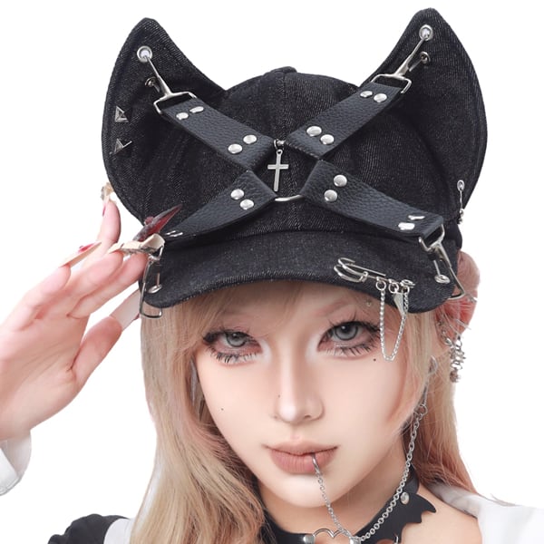 クロスハーネスパンクウルフデニムキャップ(lli_6707)