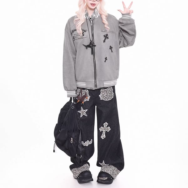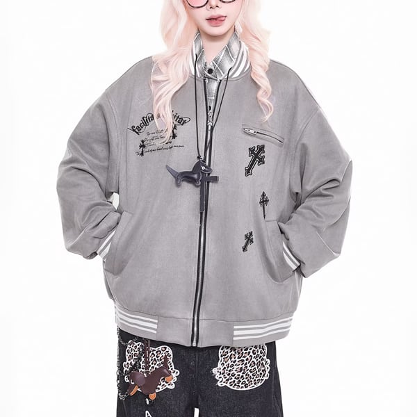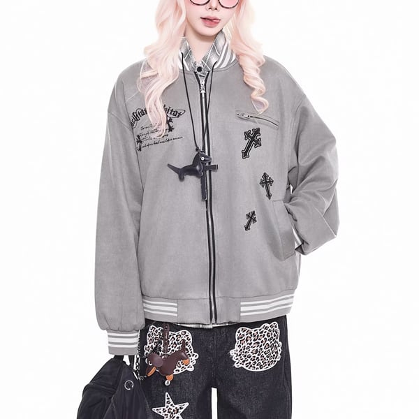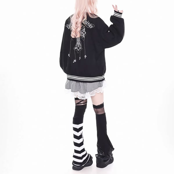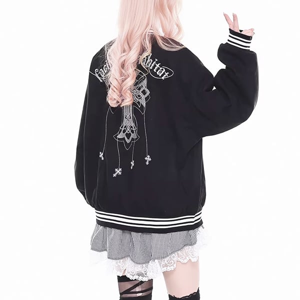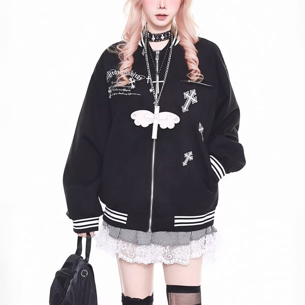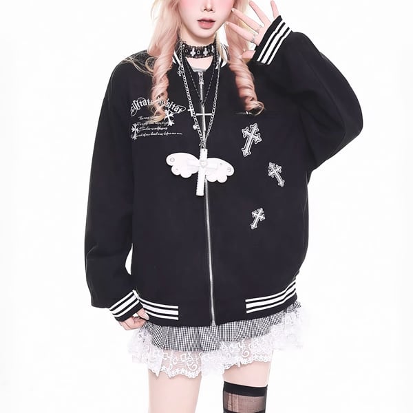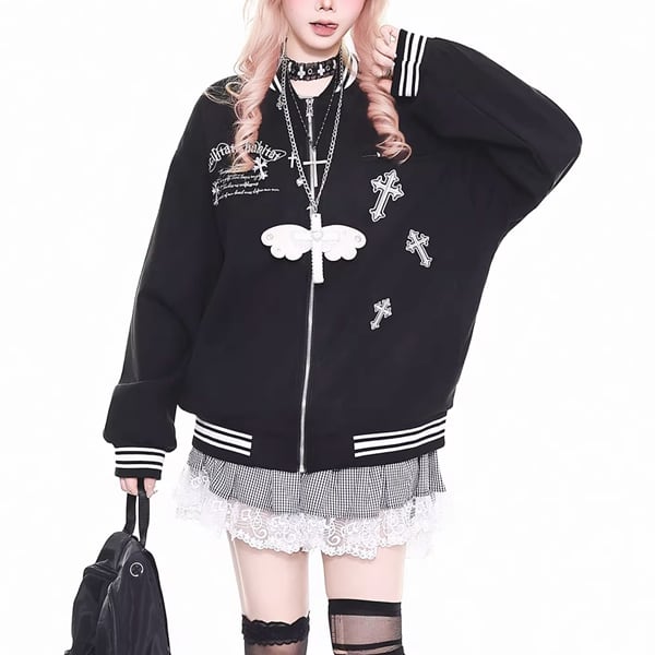 ダーククロスエンブレム刺繍ゴシックブルゾン(2カラーあり)(lli_6709)