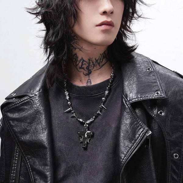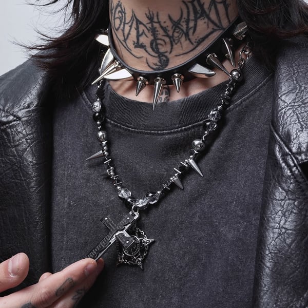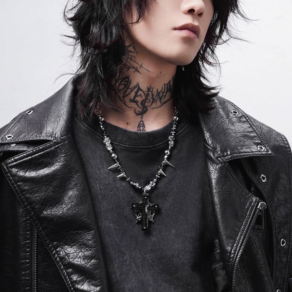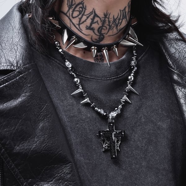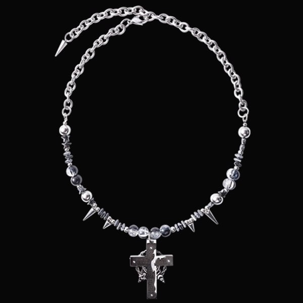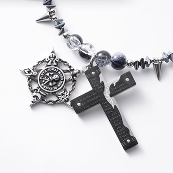 クロスペンタグラムリベットチェーンネックレス(lli_6718)