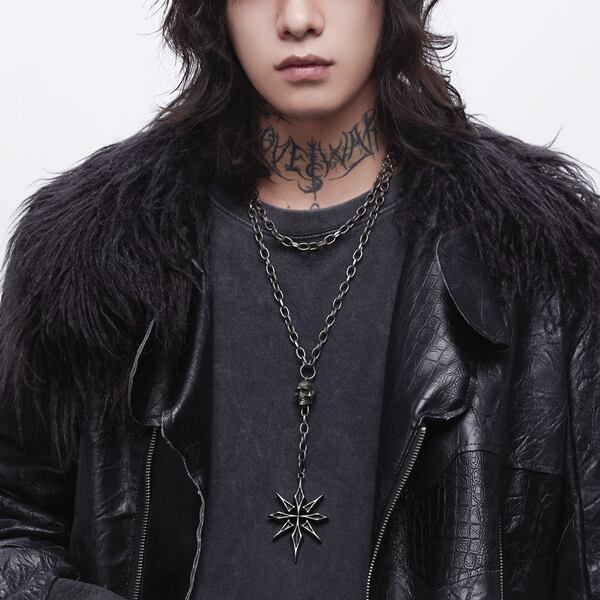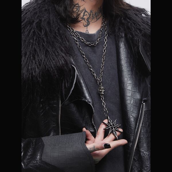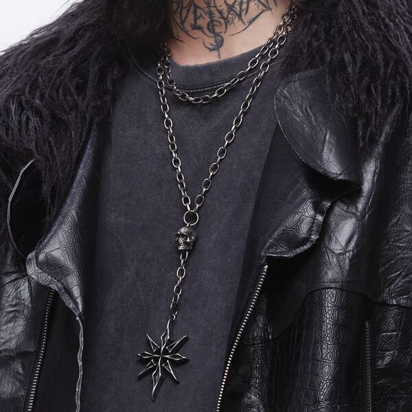 オクタクロスエイジングヘビースカルダブルチェーンネックレス(lli_6722)