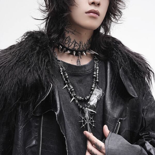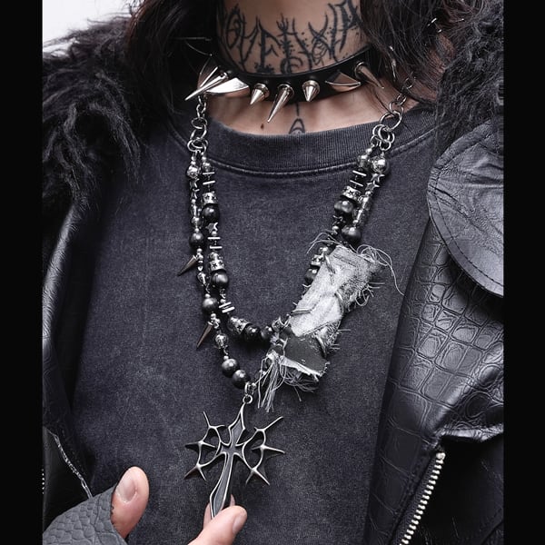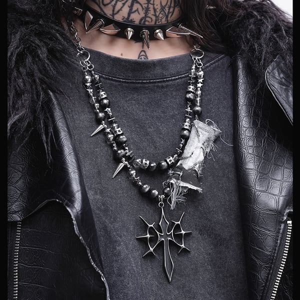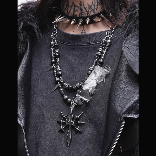 グランジクロスシンボルパンクネックレス(lli_6723)