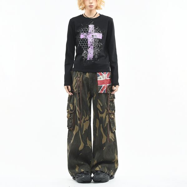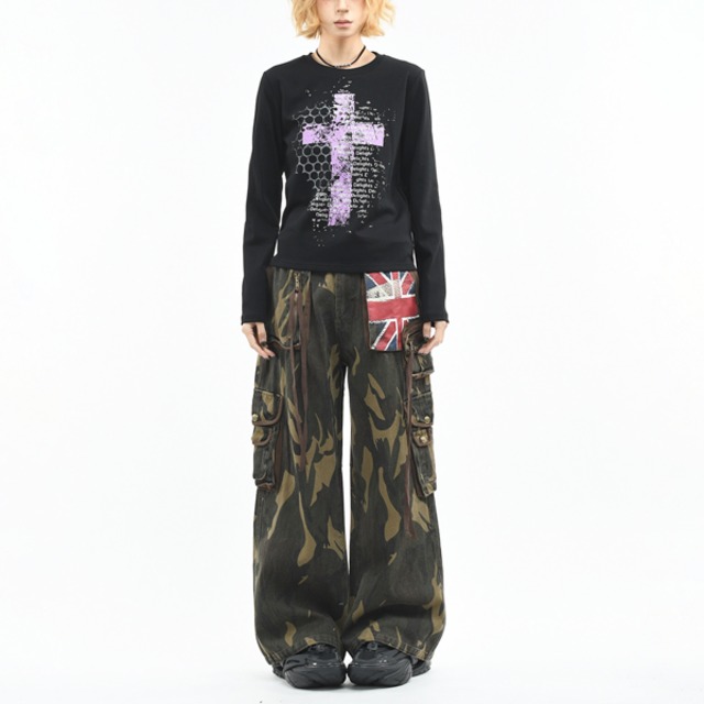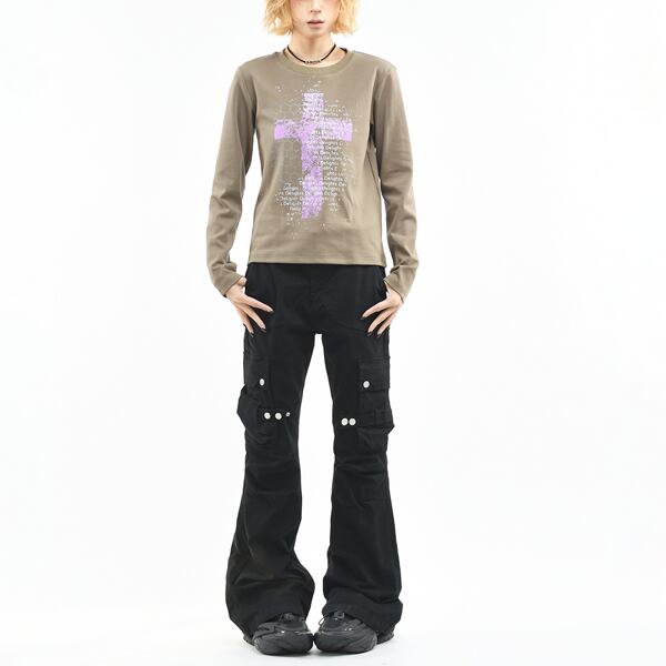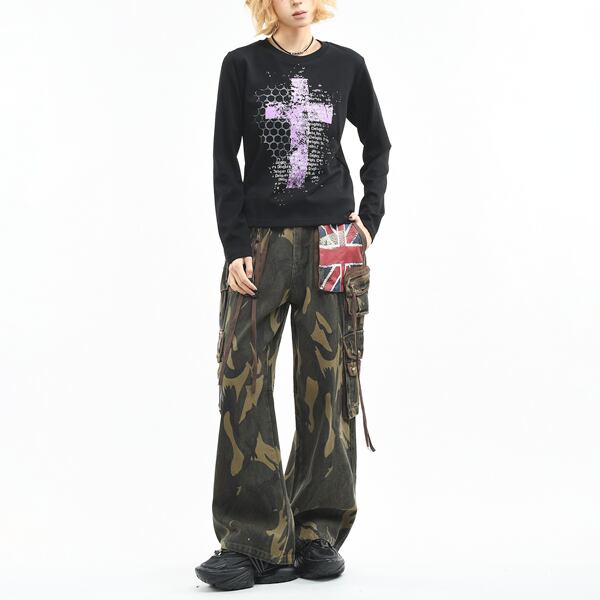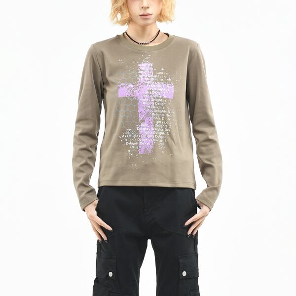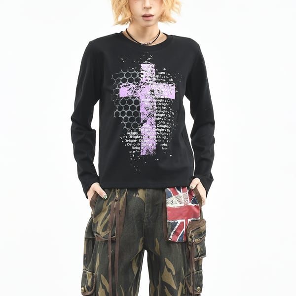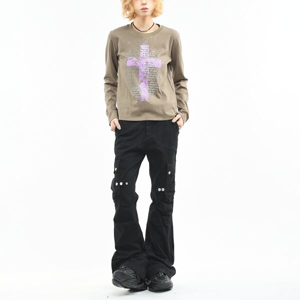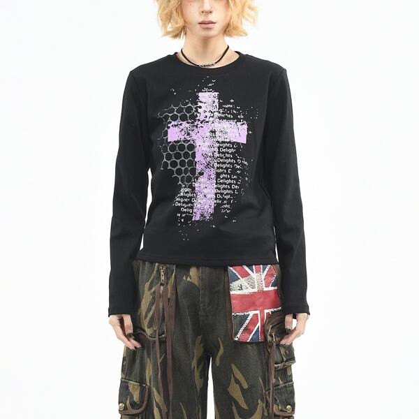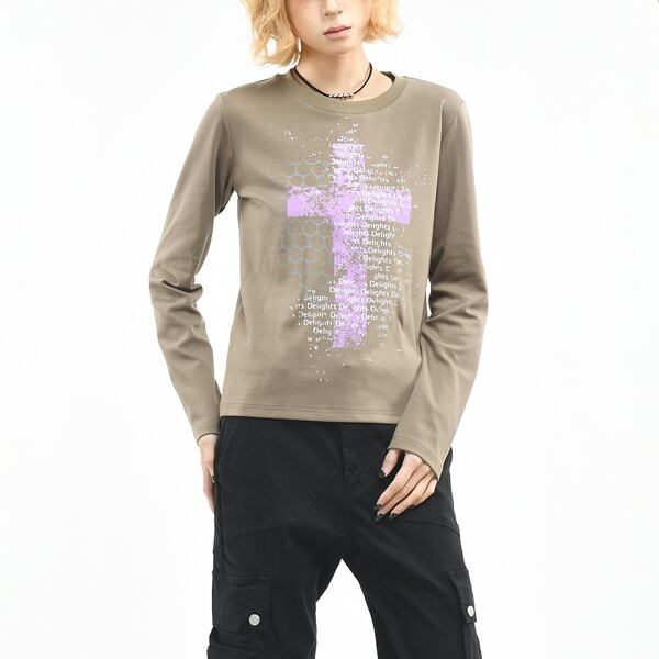 シンボルクロスレターロングスリーブカットソー(2カラーあり)(lli_6759)