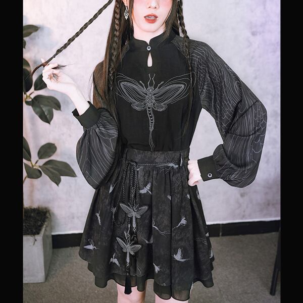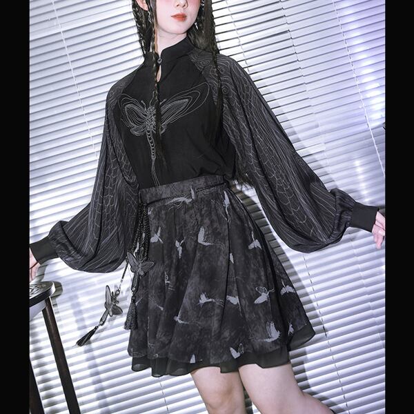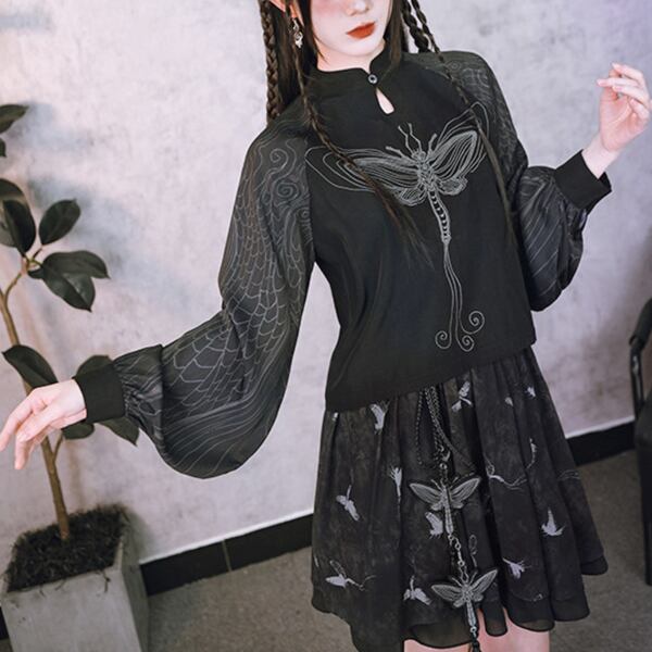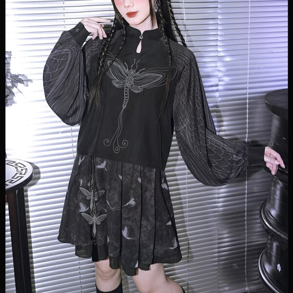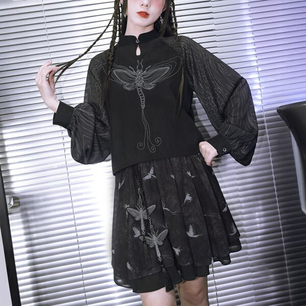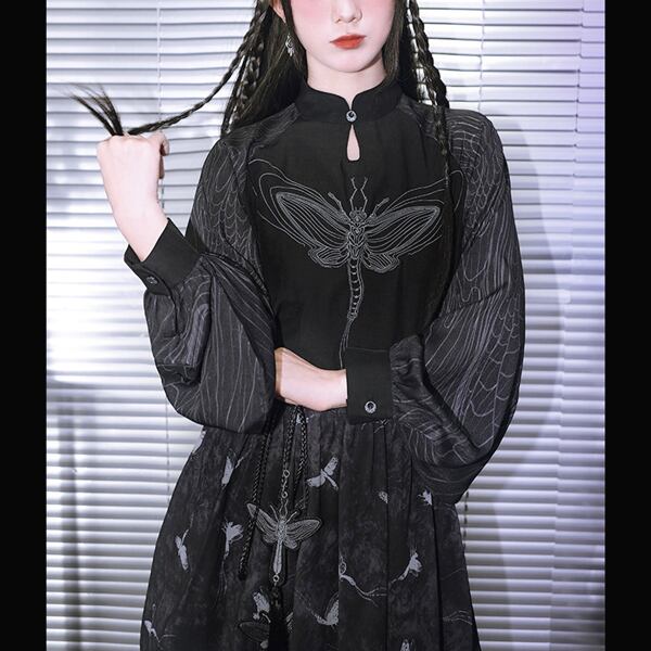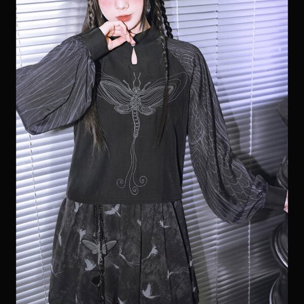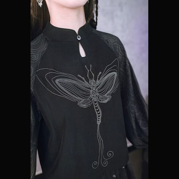 ドラゴンフライ刺繍シアースリーブトップス(lli_6790)