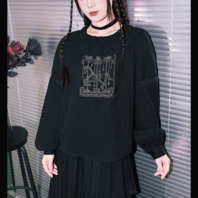 カルーセルグラフィックゴシックフリル襟2wayトップス(lli_6794)
