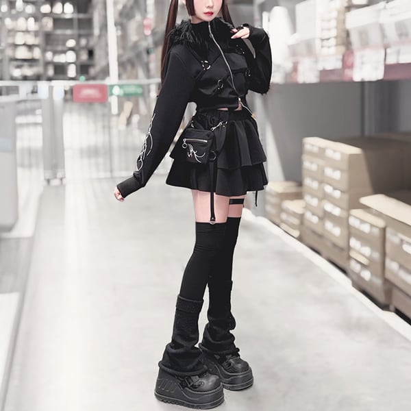 サイドストラップポケットレイヤードフリルベルトミニスカート(lli_6800)