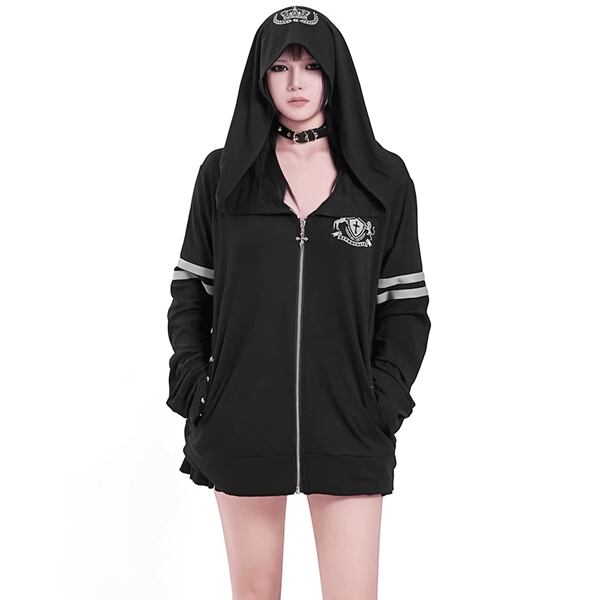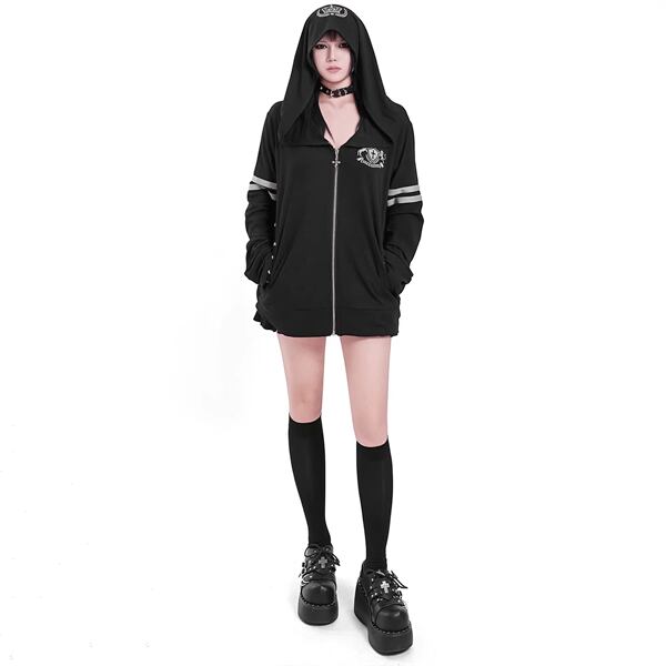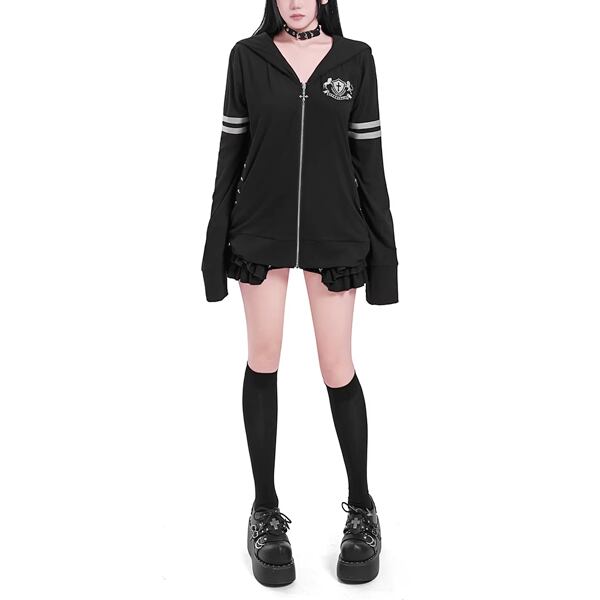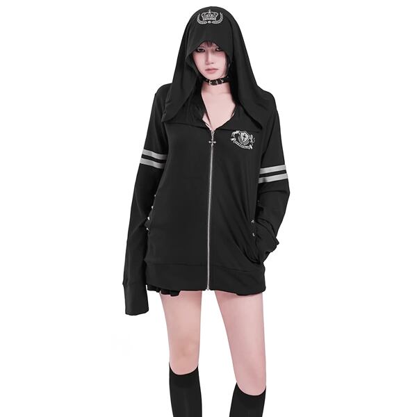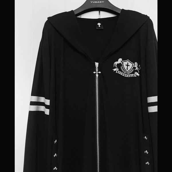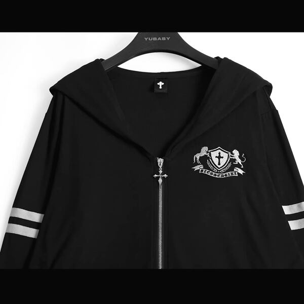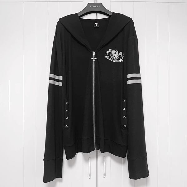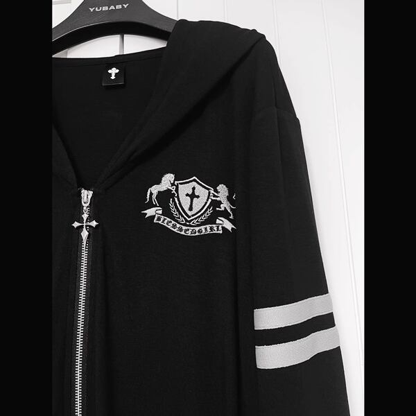 ビッグフードクラウンダブルライン刺繍ジップパーカー(lli_6805)