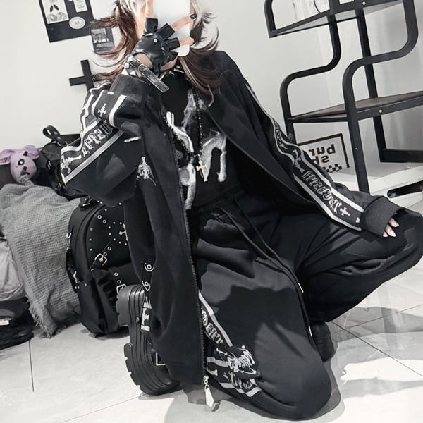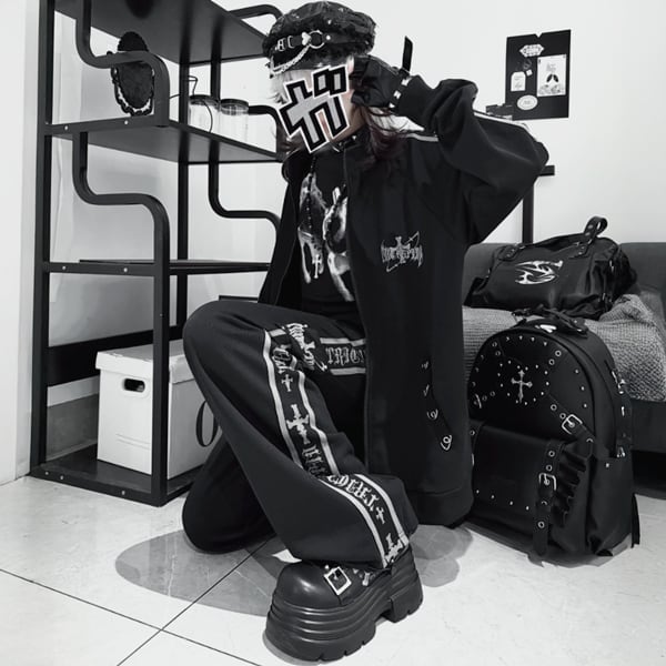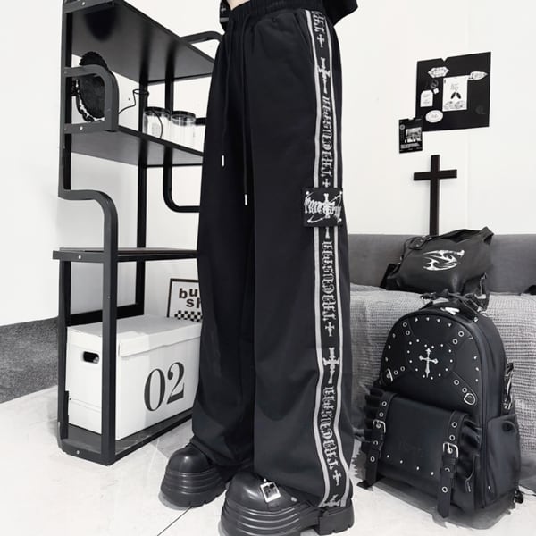 グレーラインブラックダークトラックパンツ(lli_6808)