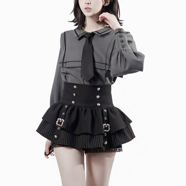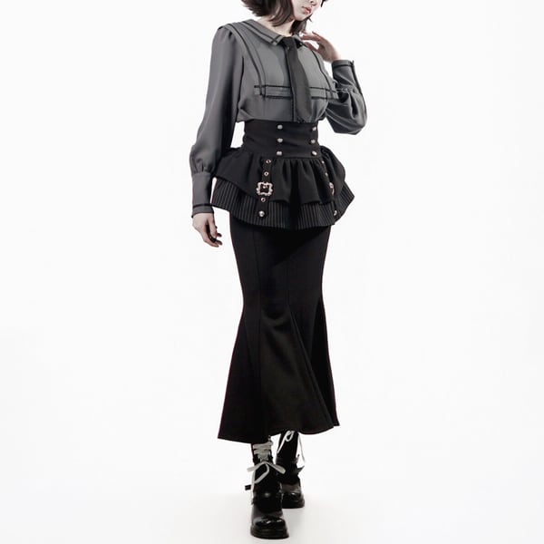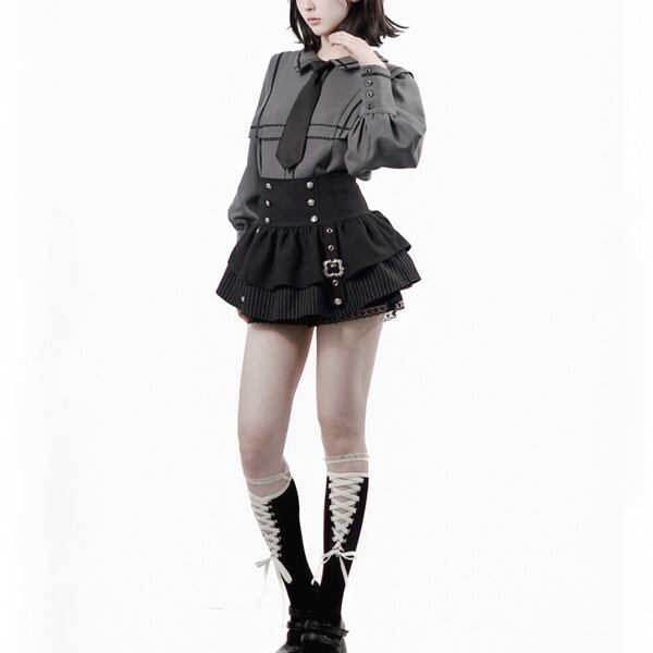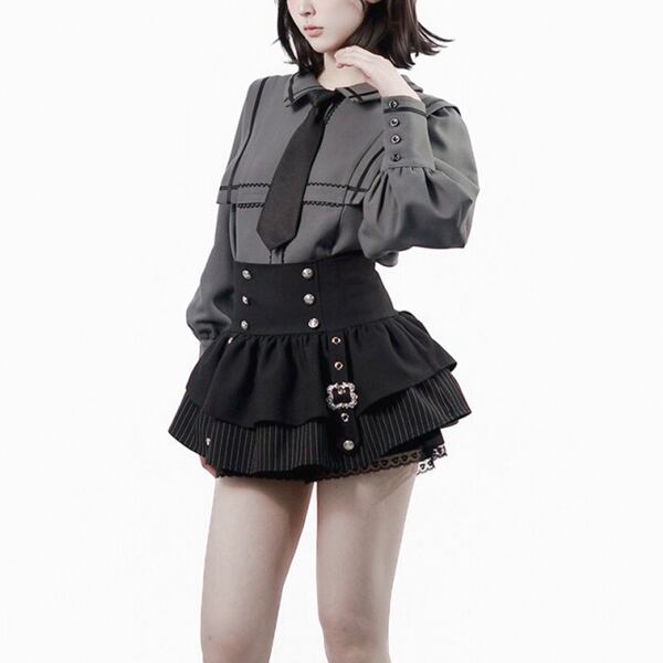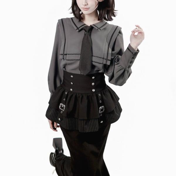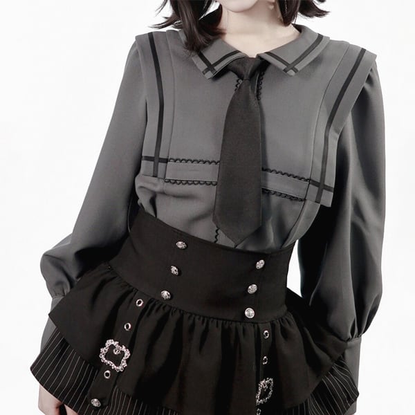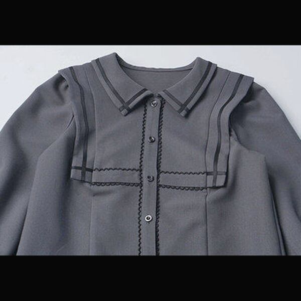 クロスカットデザインロングスリーブグレーシャツ(lli_6813)