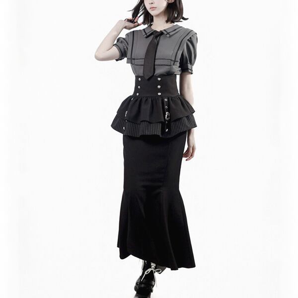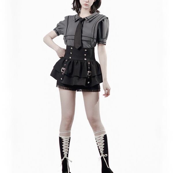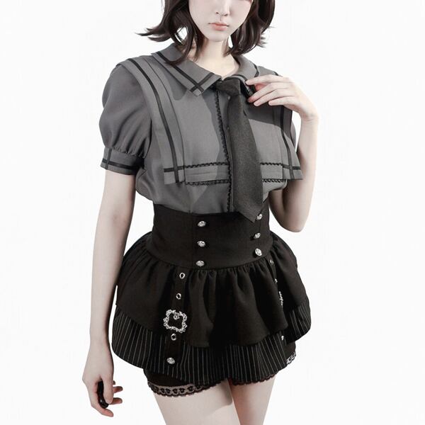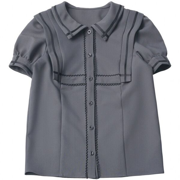 クロスカットデザインショートスリーブグレーシャツ(lli_6814)