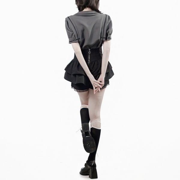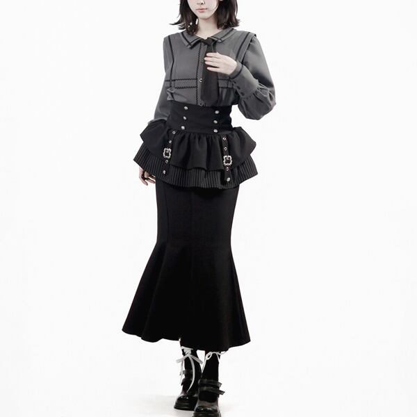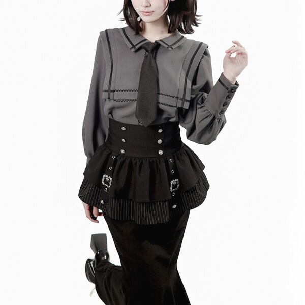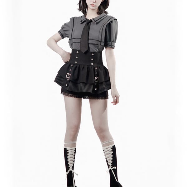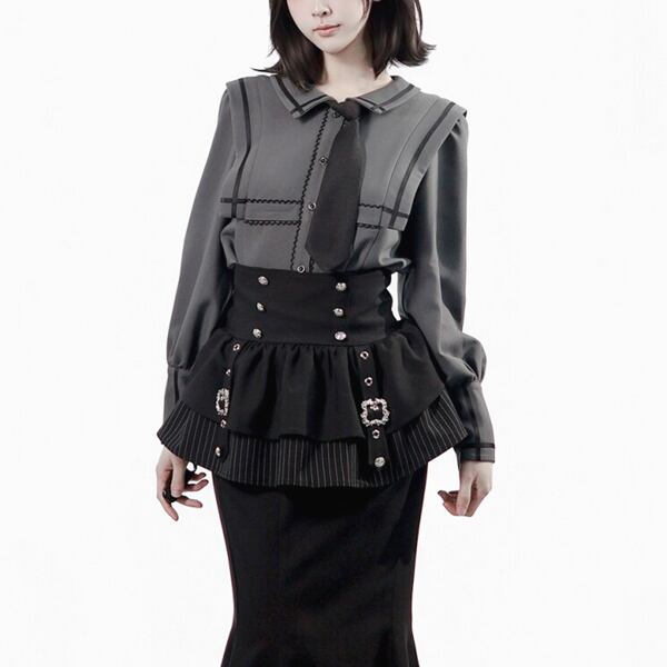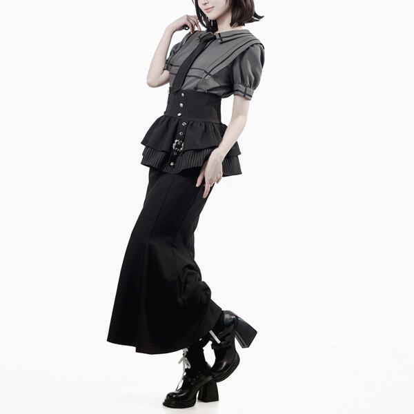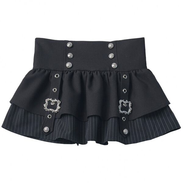 ブラックフリルレイヤード コルセットベルトミニスカート(lli_6816)