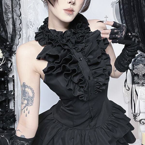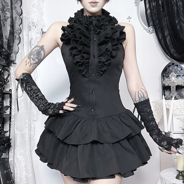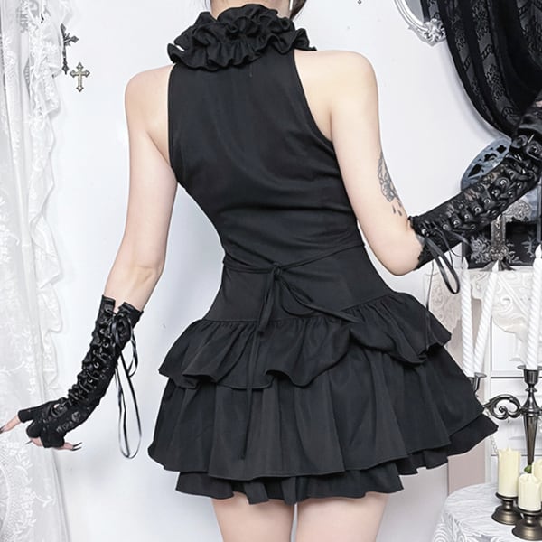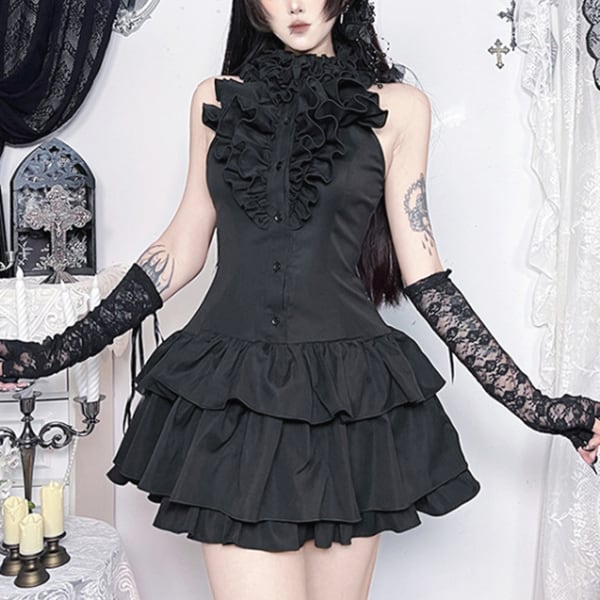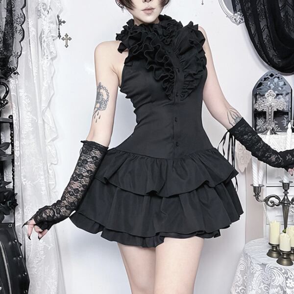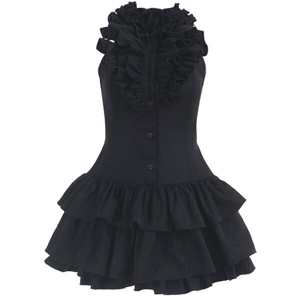 フリルネック ティアードダークドールワンピース(lli_6830)