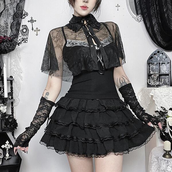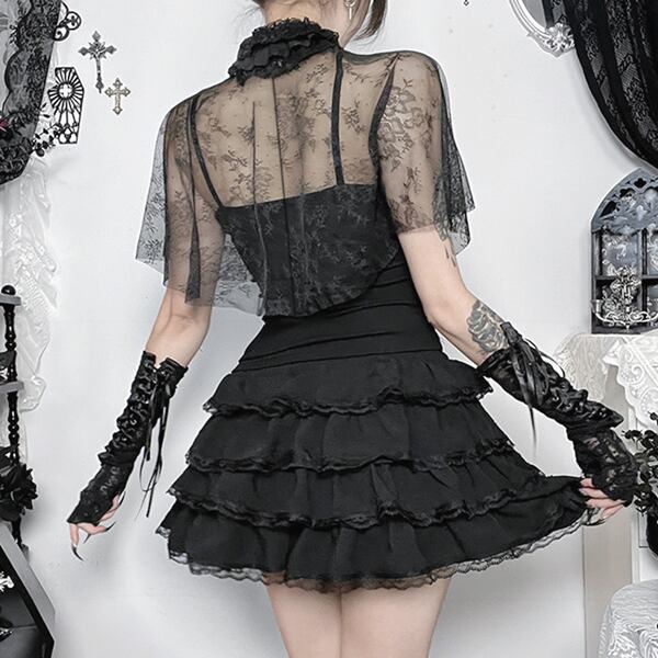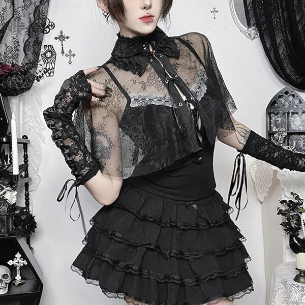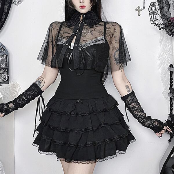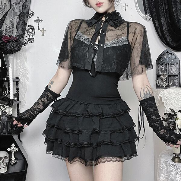 ゴシックレースケープセットアップキャミソールレイヤードトップス(lli_6832)