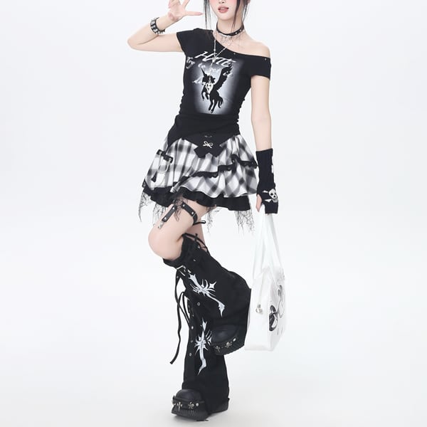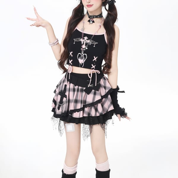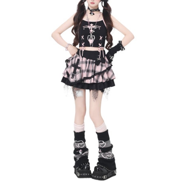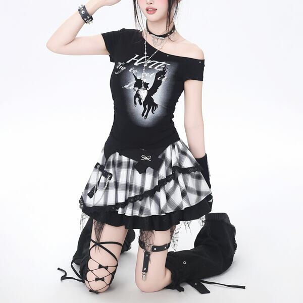 チェックレイヤード ティアードミニスカート(3カラーあり)(lli_6845)